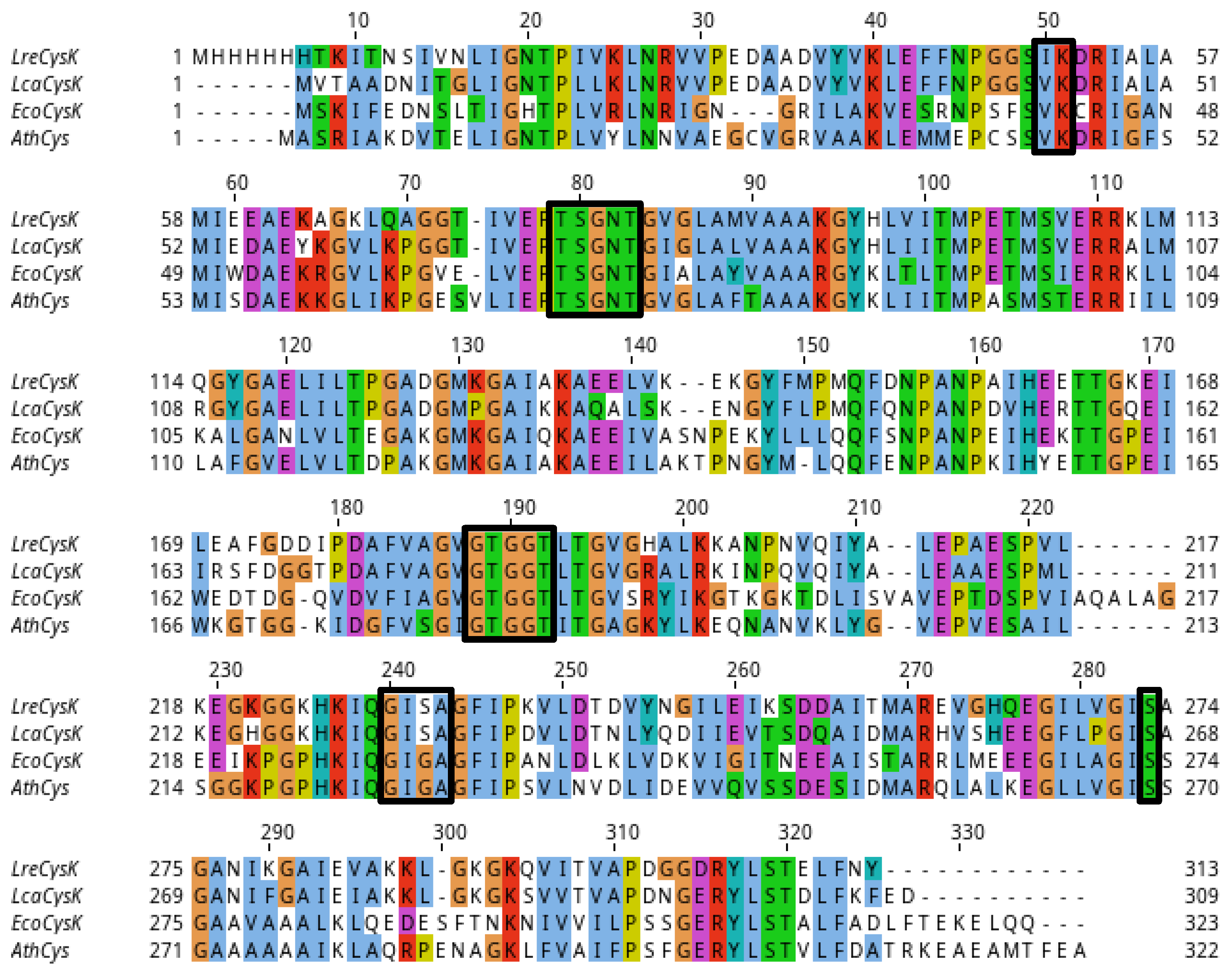 | Leucaena leucocephala CysK | 0.84 ± 0.03 | 0.06 ± 0.003 | 72.83 | 86.7 | 1213 | [21] |
