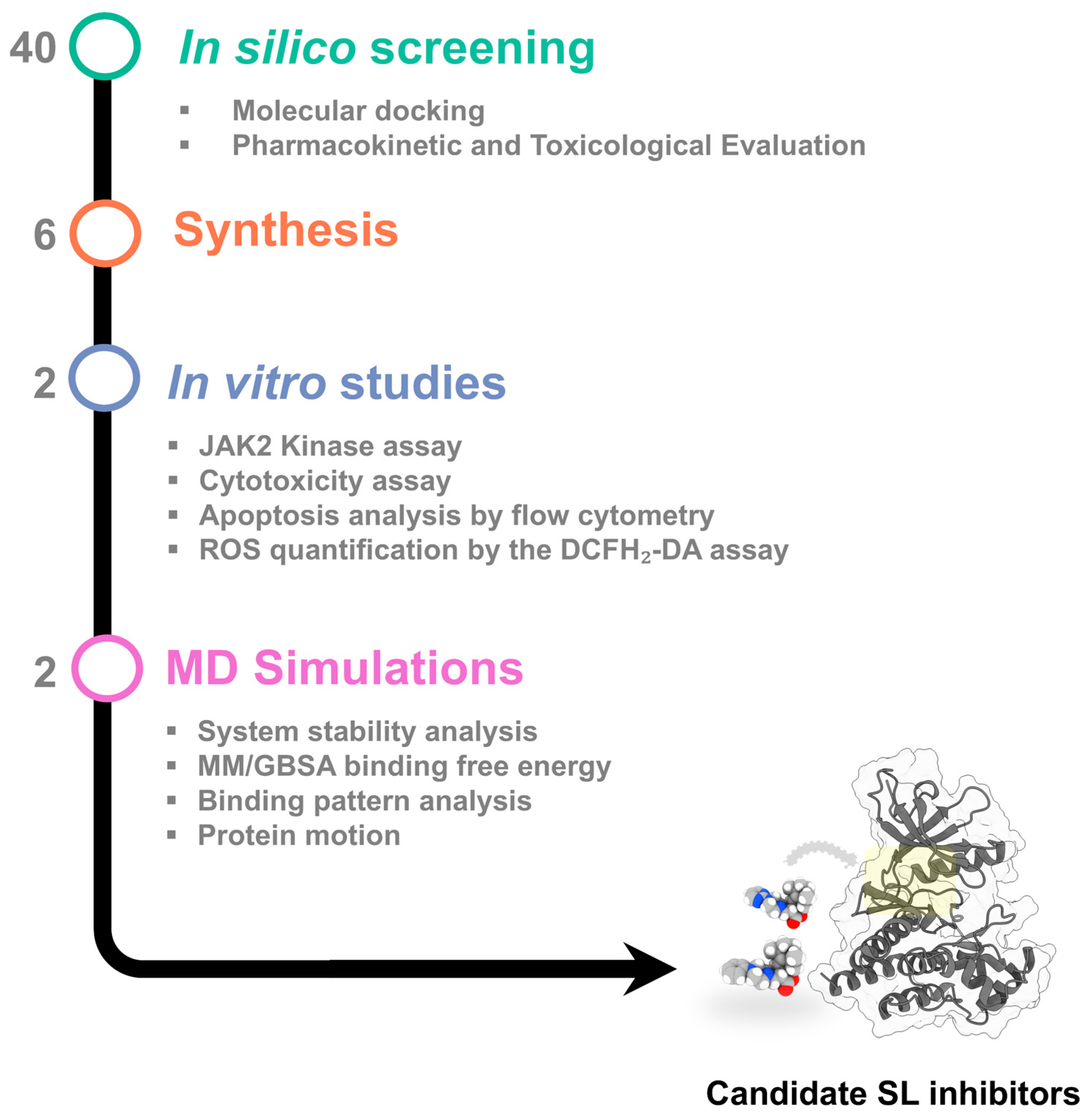 - Chandrasekhar, B.; Sohn, H.; Madhavan, T. Discovery of potential JAK2 inhibitor: In silico molecular docking and molecular dynamics study for colon cancer therapy. Chem. Pap. 2025, 1–16. [Google Scholar] [CrossRef]