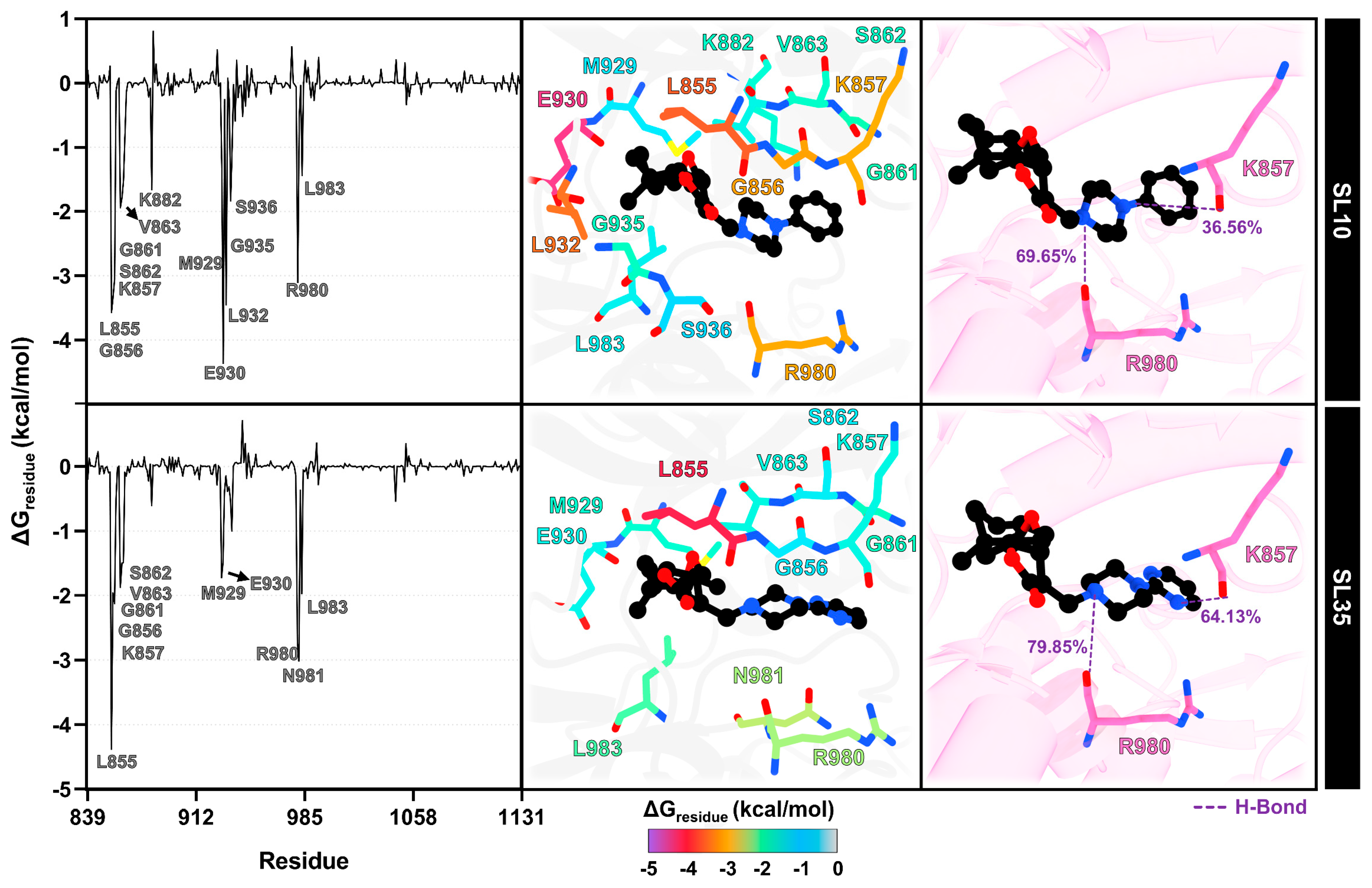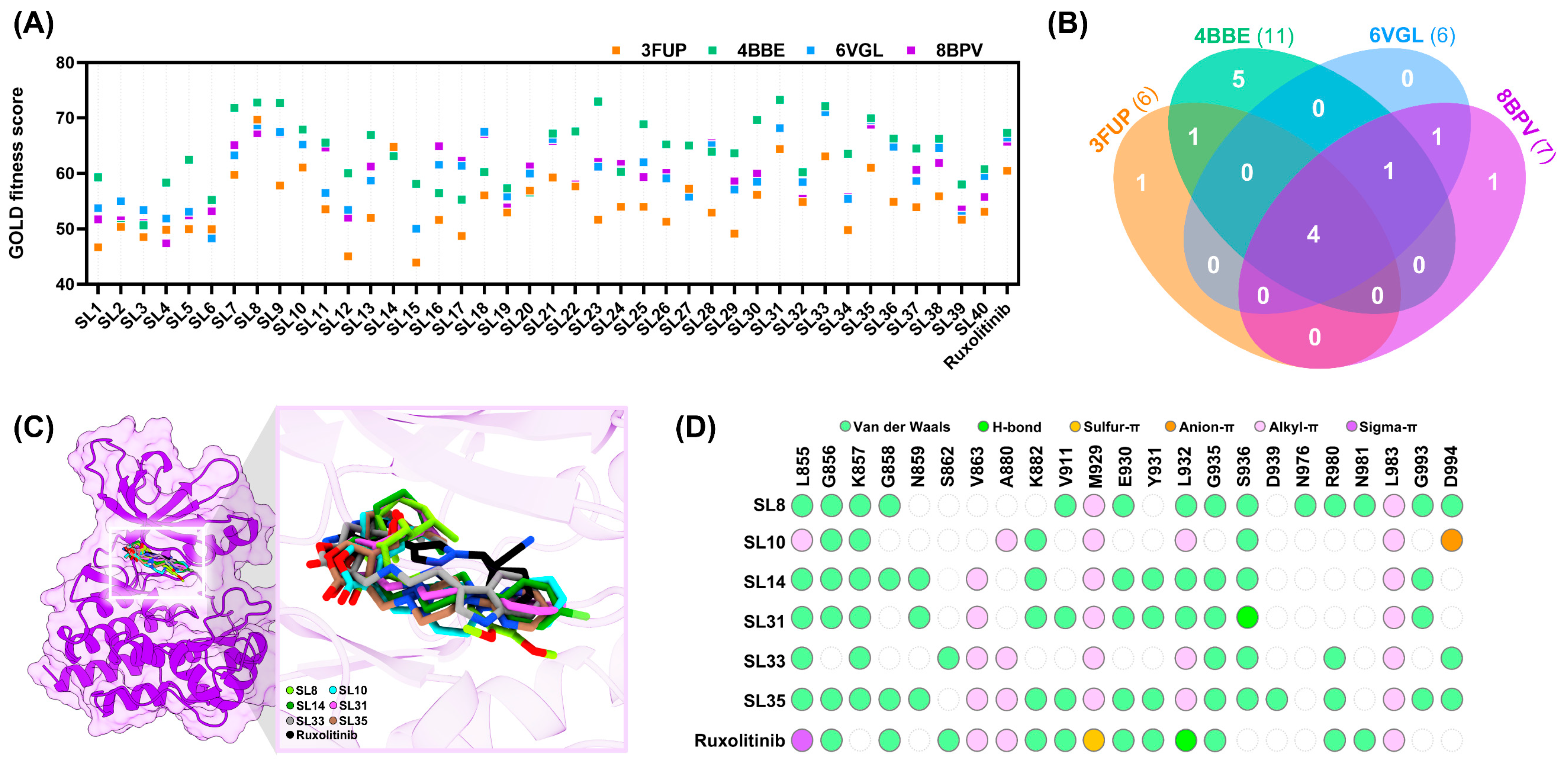 2.7. Structural Dynamics and Binding Free Energy Analysis of JAK2–SL Complexes