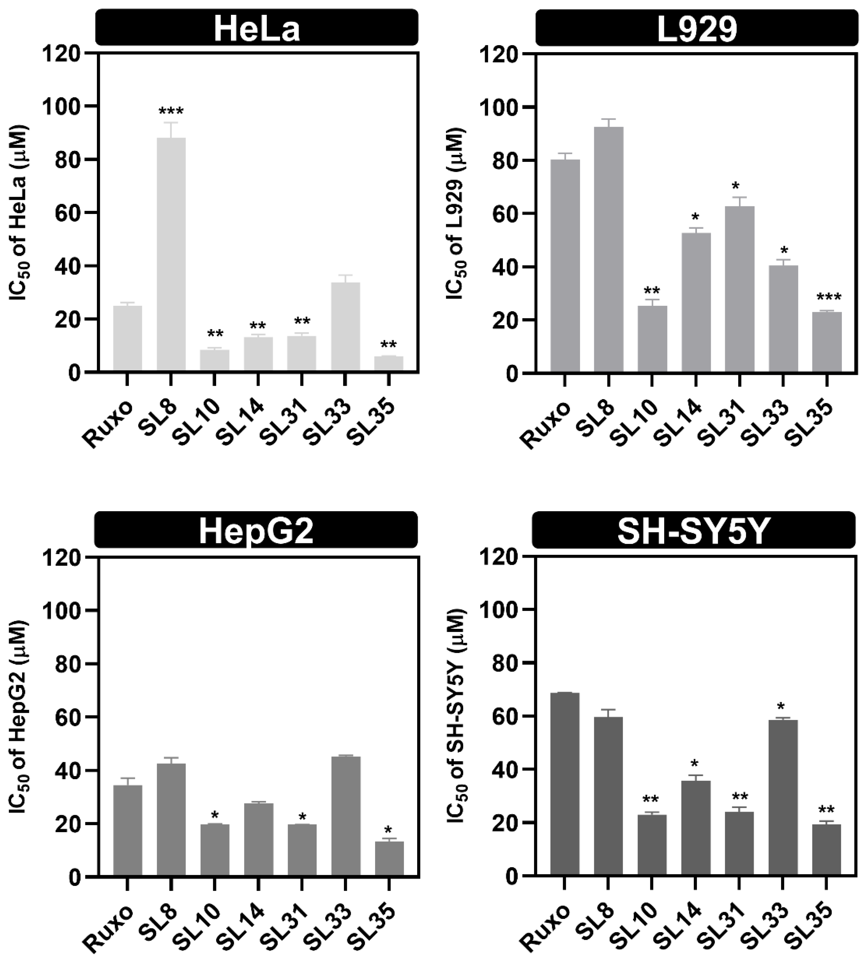 2.4. In Vitro Study of Anti-Proliferative Effects of SL Compounds