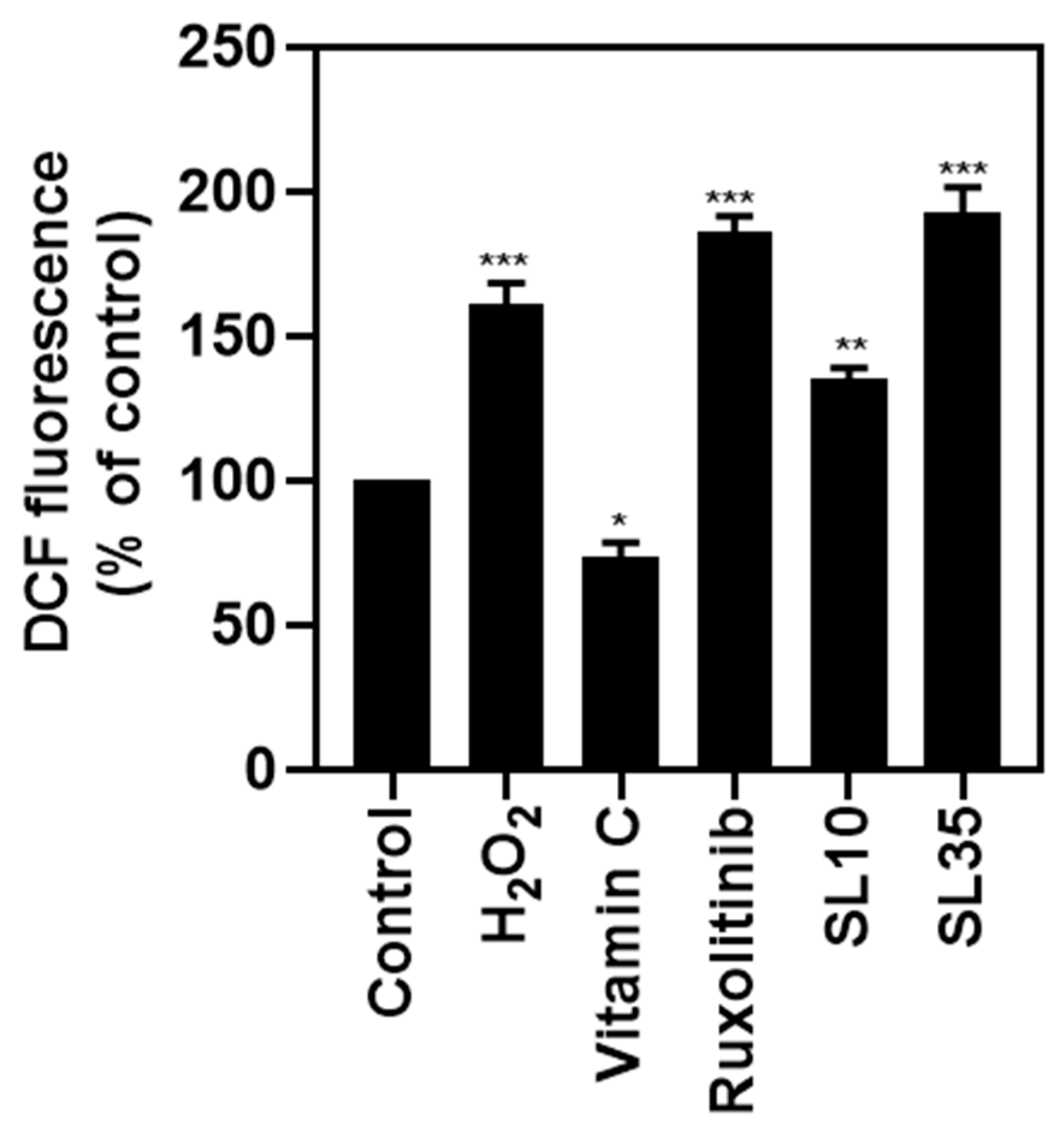 2.6. Investigation of Intracellular ROS Generation Induced by Lead Compounds