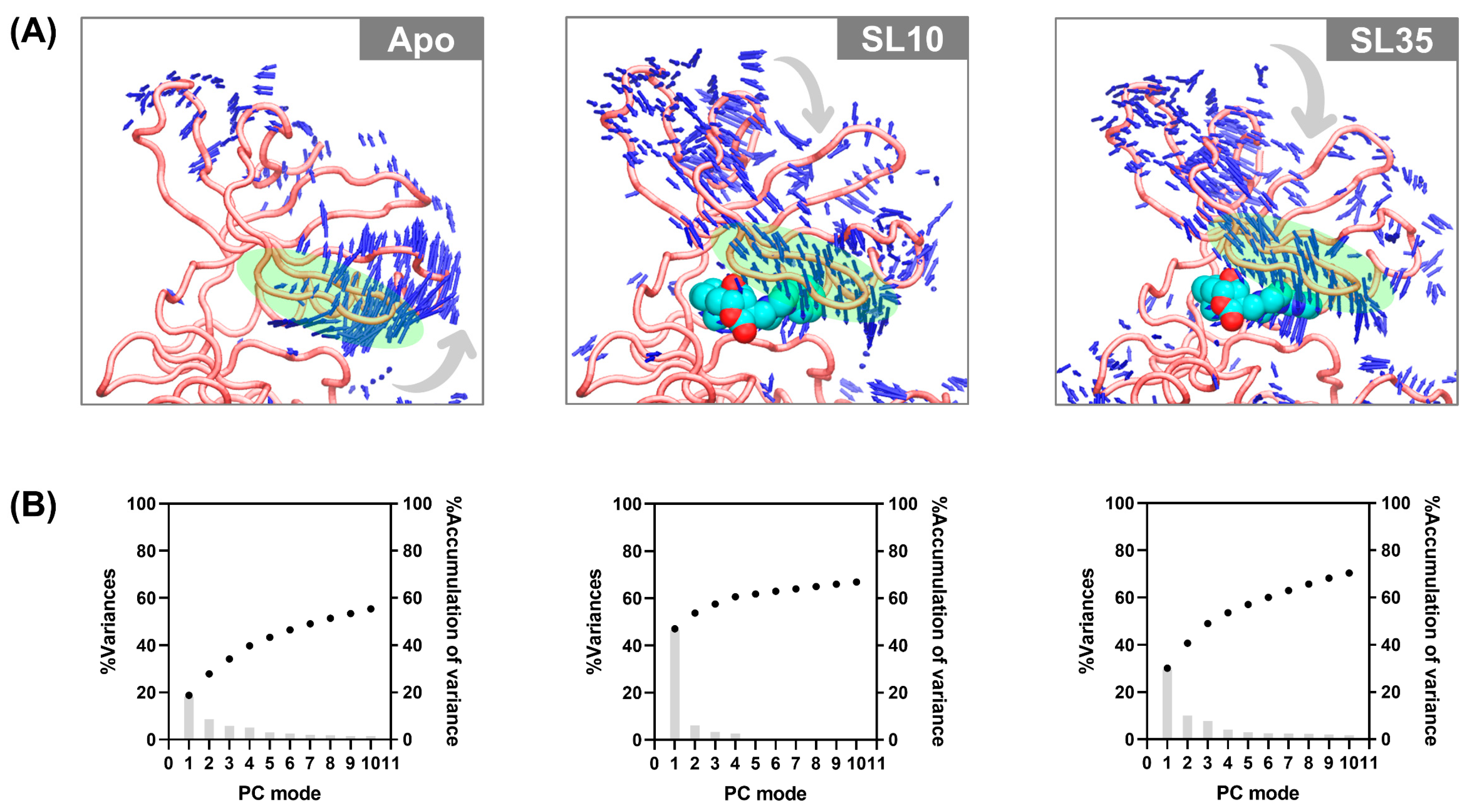 2.9. Conformational Dynamics of the JAK2 upon SL Binding