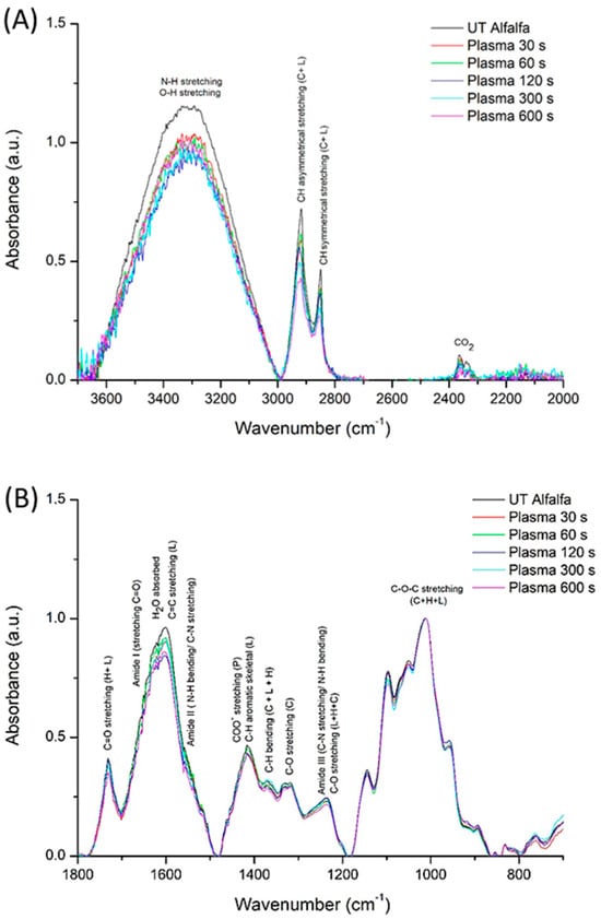 - Luan, X.; Song, Z.; Xu, W.; Li, Y.; Ding, C.; Chen, H. Spectral characteristics on increasing hydrophilicity of alfalfa seeds treated with alternating current corona discharge field. Spectrochim. Acta A Mol. Biomol. Spectrosc. 2020, 236, 118350. [Google Scholar] [CrossRef]