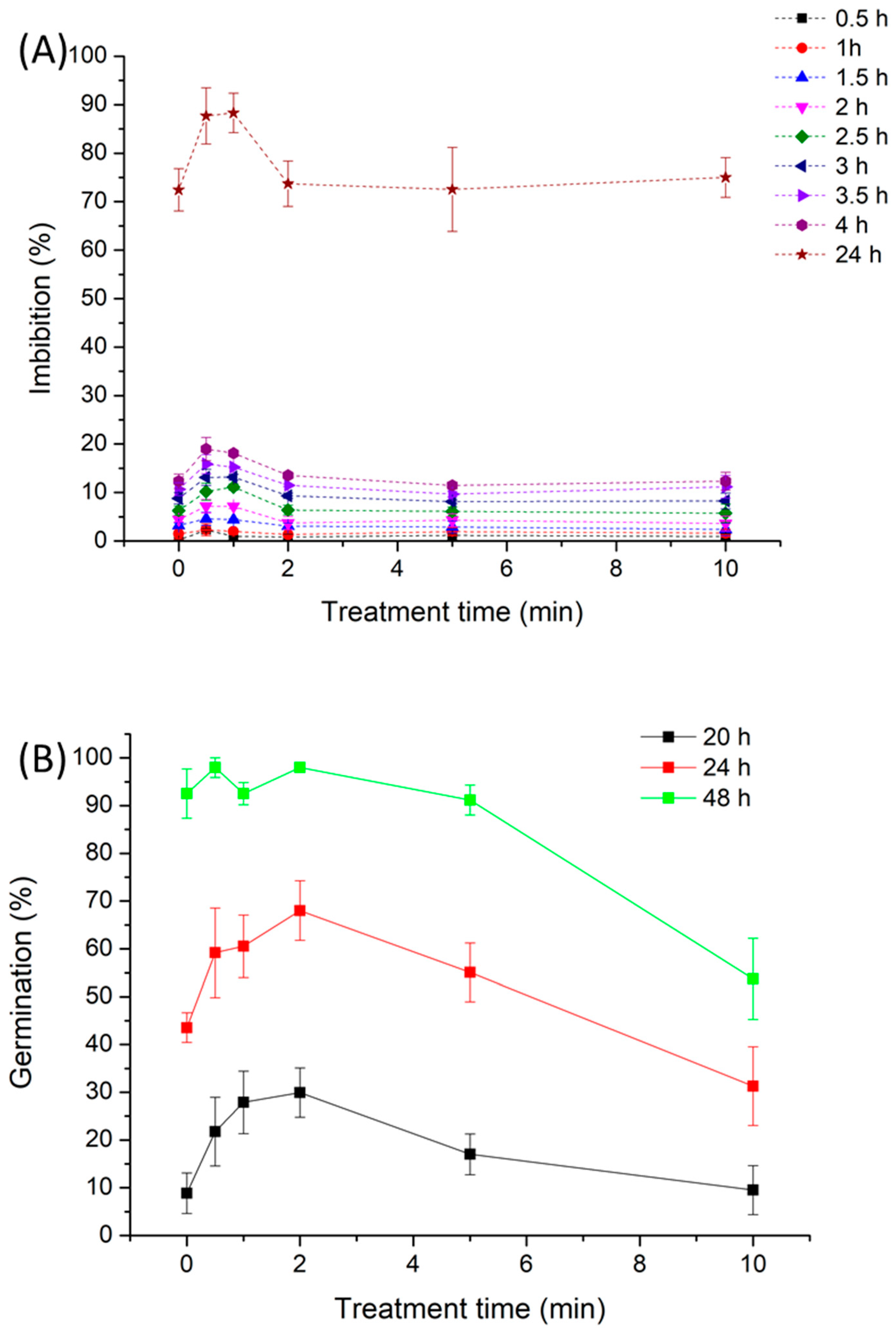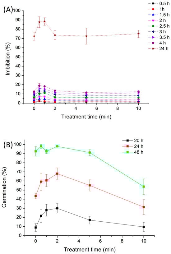 2.3. Effect of NTP Exposure Time on Imbibition and Germination of Alfalfa Seeds