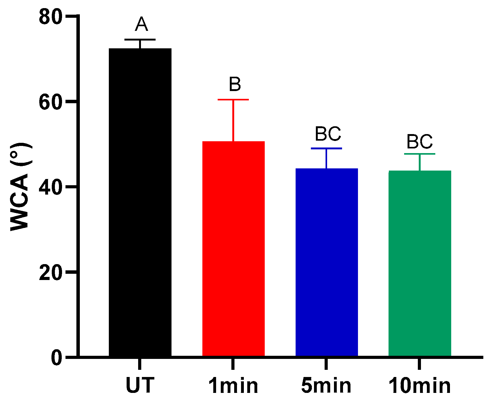 3.3.1. Water Contact Angle (WCA)