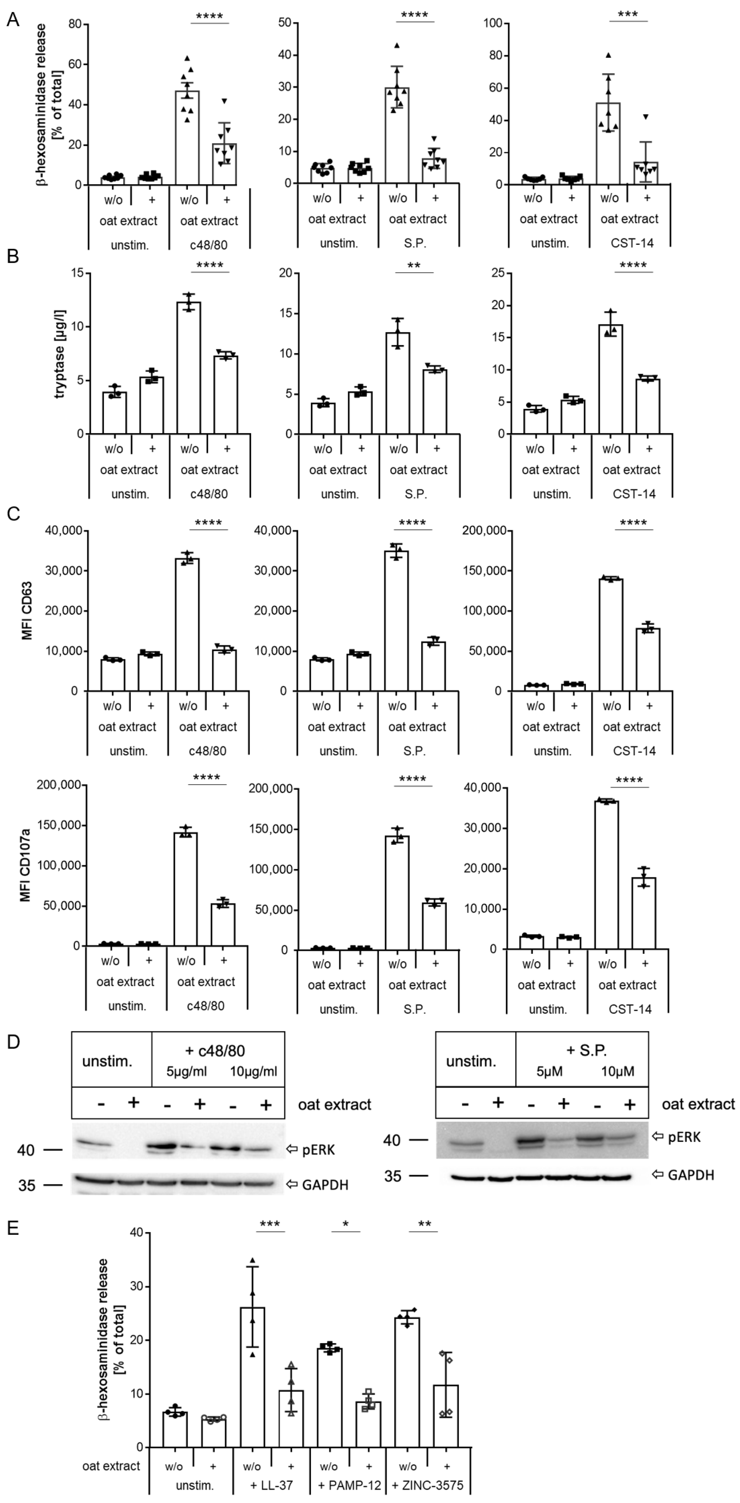 2.5. Inhibition of MRGPRX2 Activation in Primary Human Mast Cells by Oat Extract