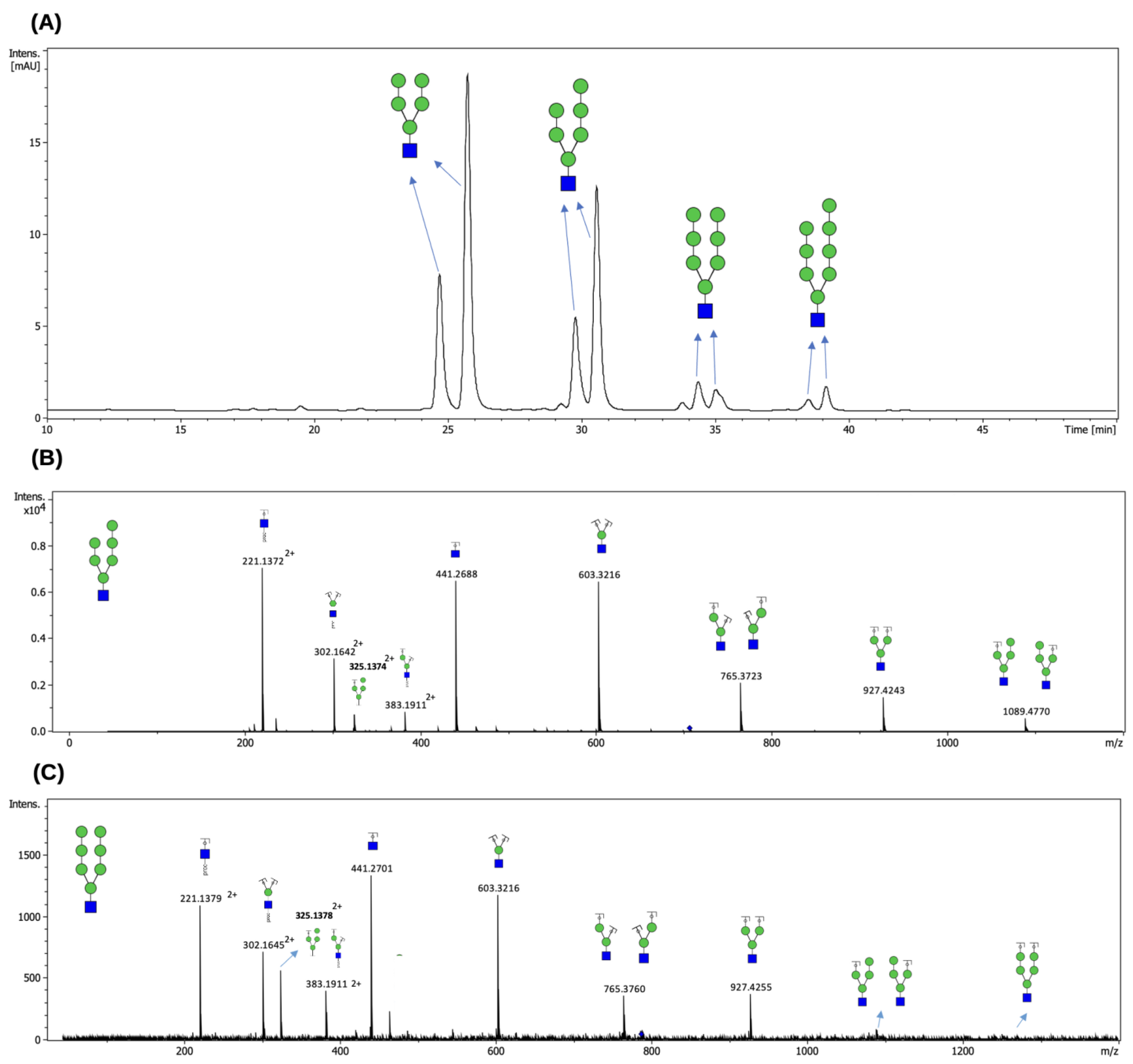 - Kayili, H.M.; Salih, B. N-Glycan Profiling of Glycoproteins by Hydrophilic Interaction Liquid Chromatography with Fluorescence and Mass Spectrometric Detection. J. Vis. Exp. 2021, 175, e62751. [Google Scholar] [CrossRef]