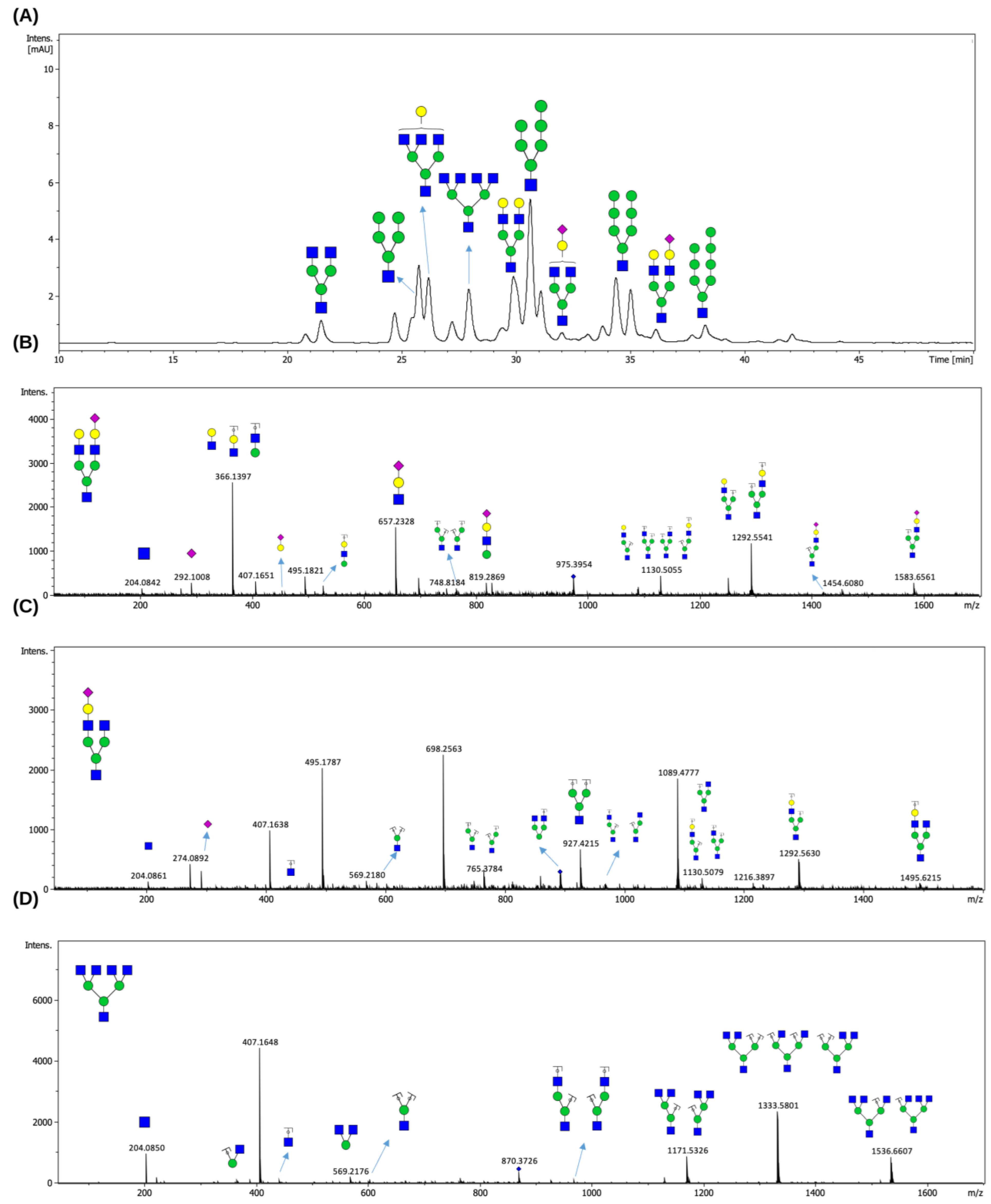 4.5.4. HPLC-HILIC-FLD-QTOF-MS/MS Analysis of N-Glycans