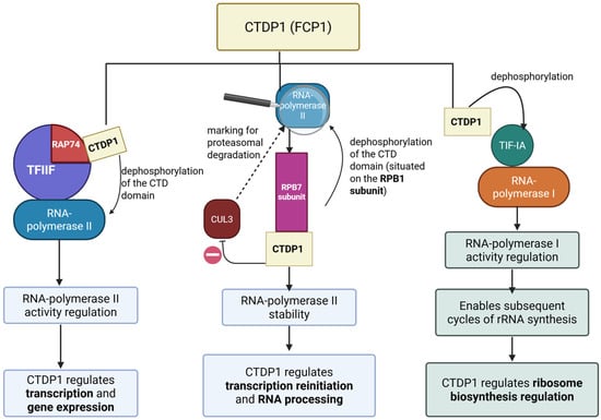 The roles of CTDP1. Created in BioRender. Chera, A. (2025) https://BioRender.com/739xspn (accessed on 15 December 2025).