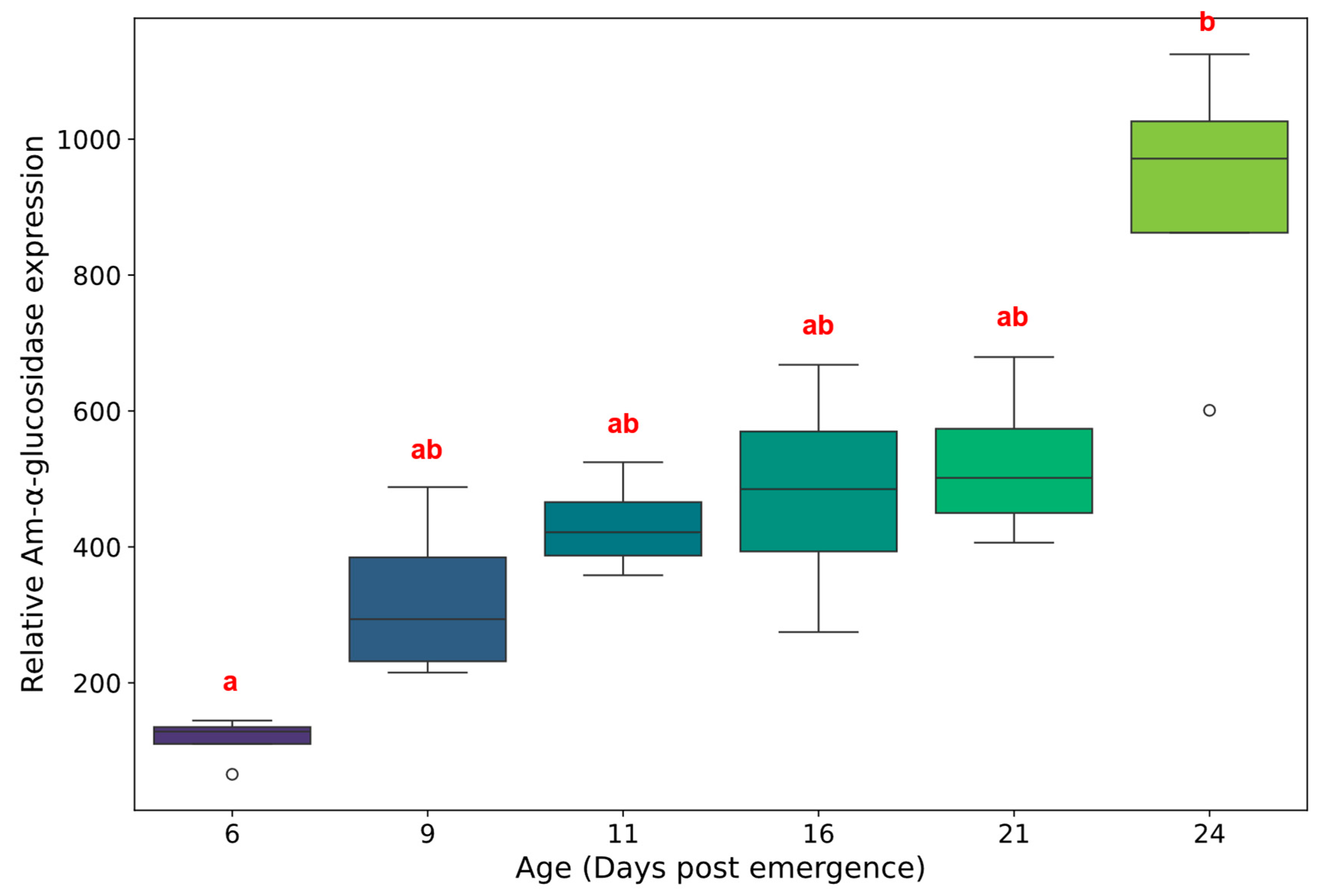 13]. Brain α-glucosidase reliably marks the nurse → forager shift [