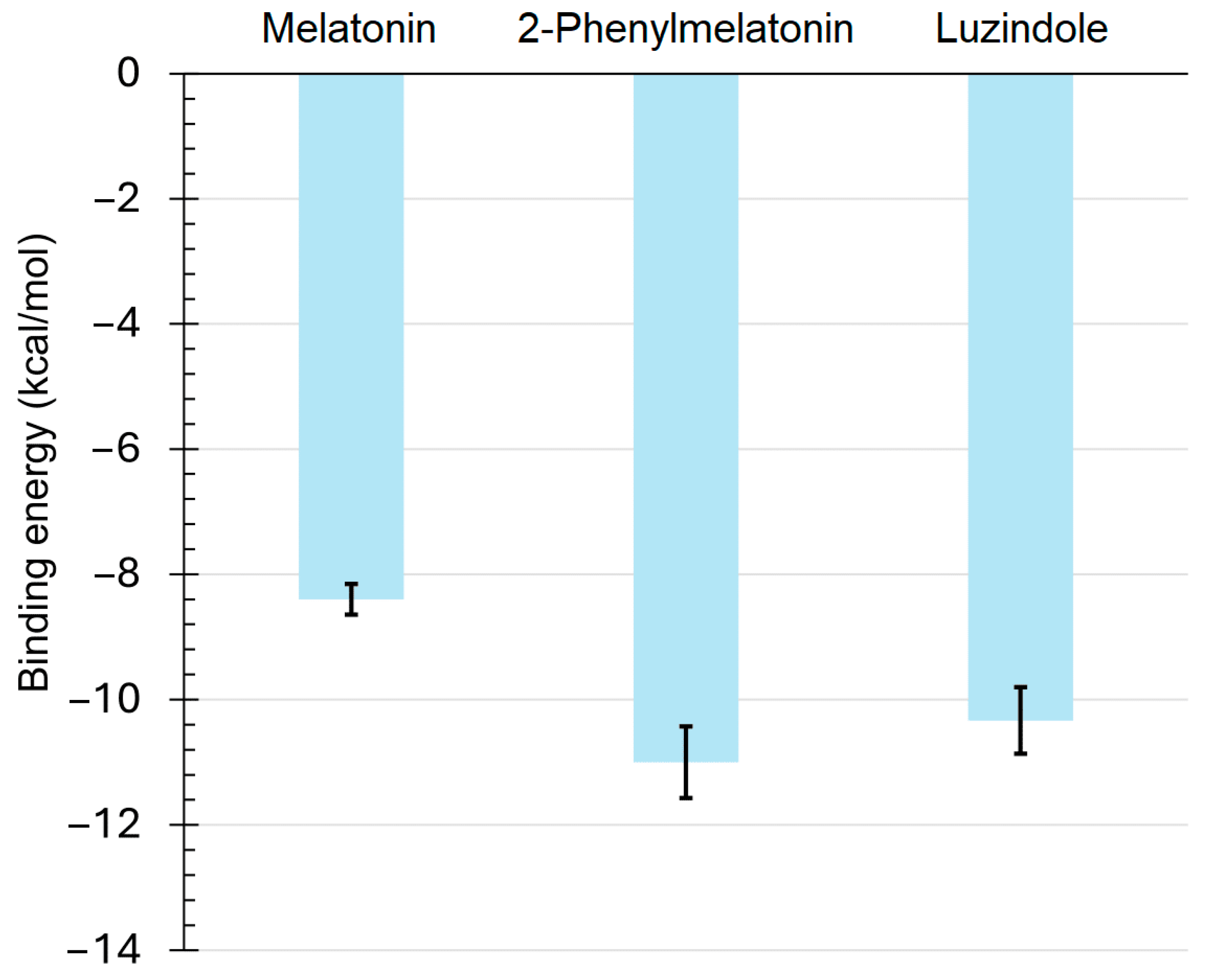 74]. AutoDock Vina was utilized to dock melatonin, 2-phenylmelatonin, and luzindole into the