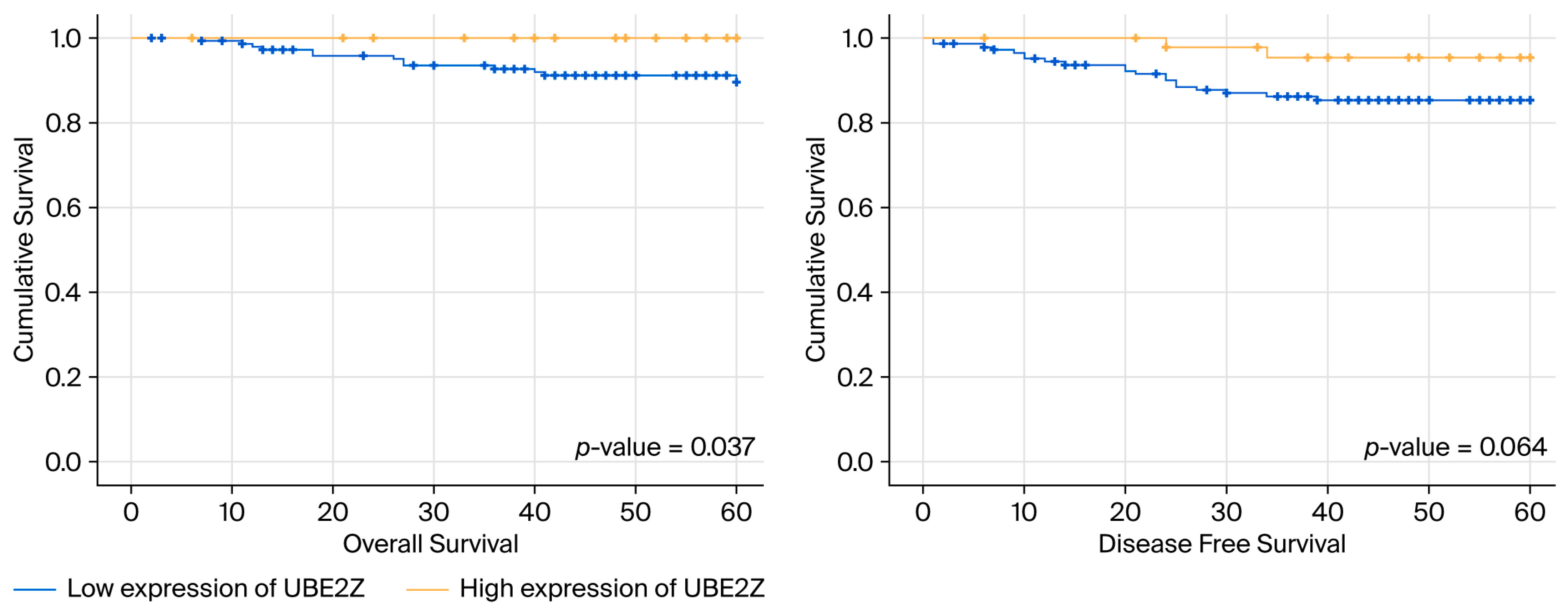 | UBE2Z Expression | Low (n = 148) | High (n = 47) | p-Value |