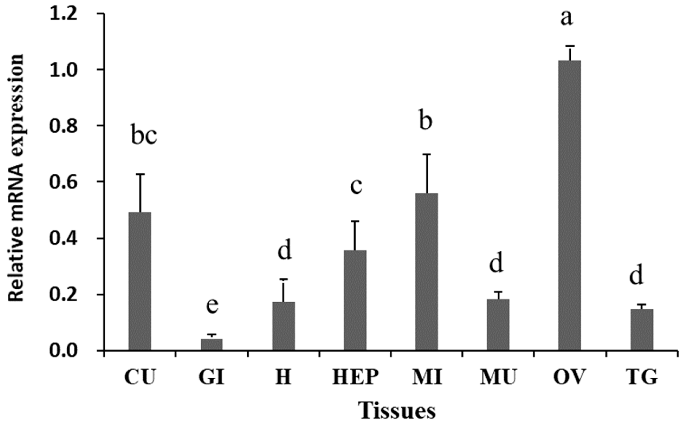 - Liu, M.; Wang, L.; Cheng, Y.; Gong, J.; Zeng, C.; Wu, X. Effect of estradiol on hepatopancreatic lipid metabolism in the swimming crab, Portunus trituberculatus. Gen. Comp. Endocr. 2019, 280, 115–122. [Google Scholar] [CrossRef]