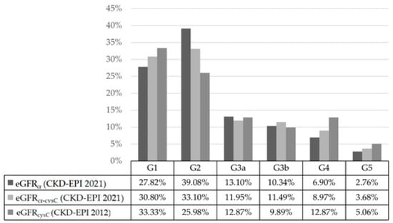 - Hojs, R.; Bevc, S.; Ekart, R.; Gorenjak, M.; Puklavec, L. Serum cystatin C-based equation compared to serum creatinine-based equations for estimation of glomerular filtration rate in patients with chronic kidney disease. Clin. Nephrol. 2008, 70, 10–17. [Google Scholar] [CrossRef]