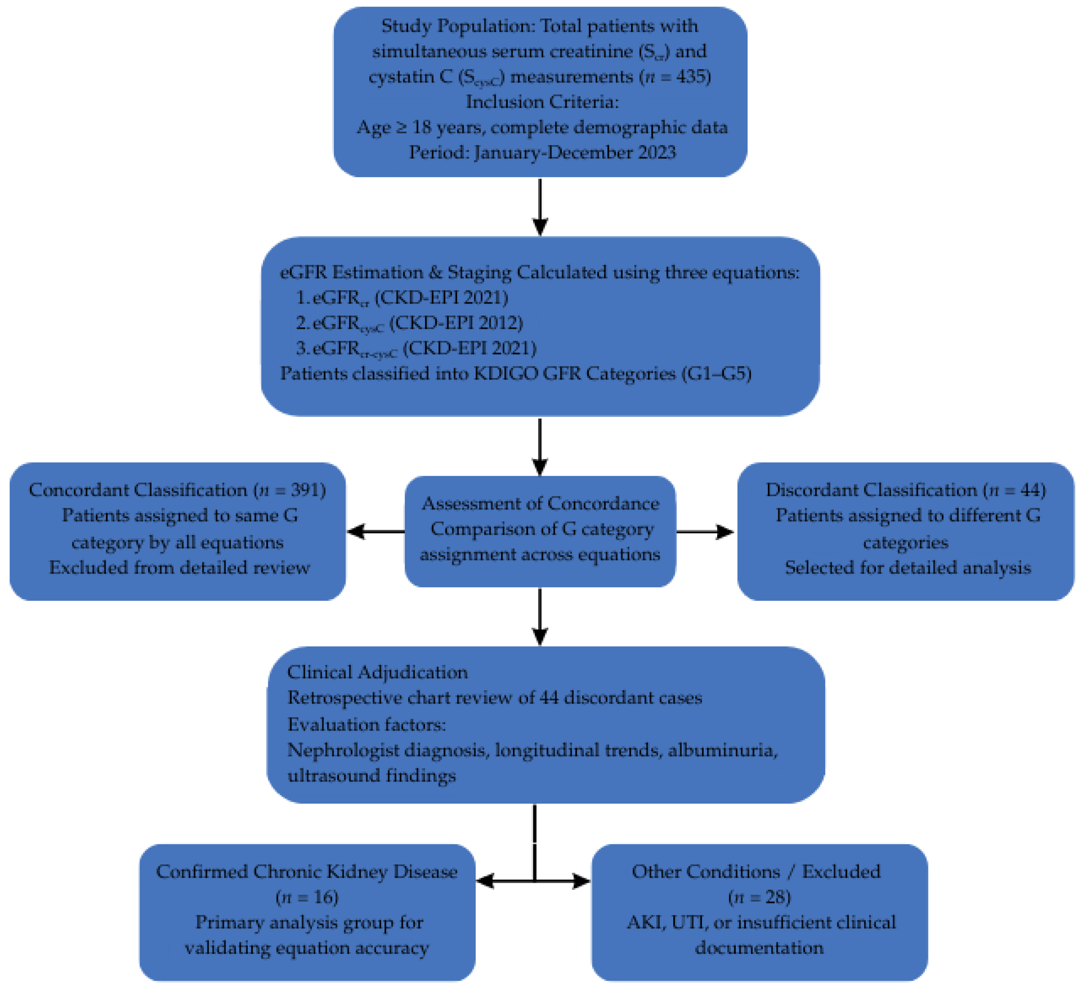 - The cystatin C-based equation often showed lower GFR values, particularly in patients with inflammatory states or obesity, aligning with early CKD detection but potentially affected by non-GFR factors.