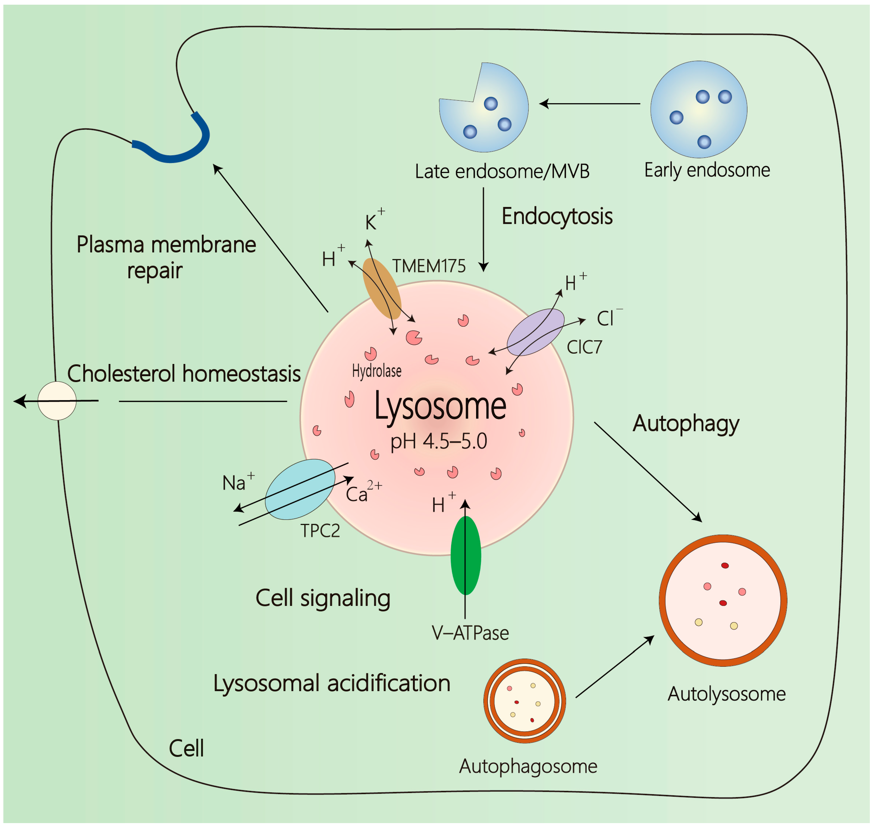 - Zhang, Z.; Yue, P.; Lu, T.; Wang, Y.; Wei, Y.; Wei, X. Role of lysosomes in physiological activities, diseases, and therapy. J. Hematol. Oncol. 2021, 14, 79. [Google Scholar] [CrossRef] [PubMed]