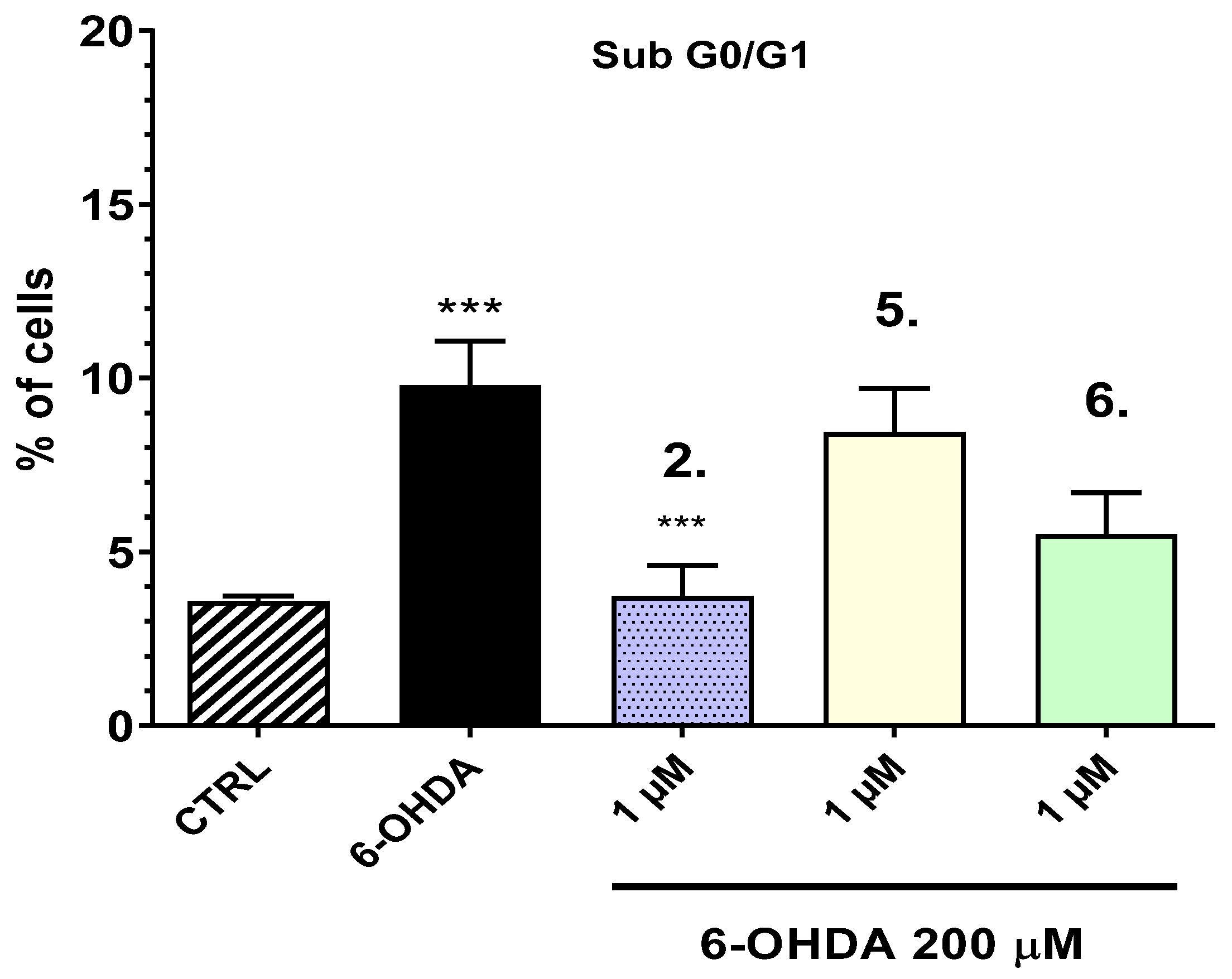 2 reduced the percentage of apoptotic cells (sub-G0/G1 population) from 9.79% (6-OHDA group) to 3.73%. This finding indicates that
