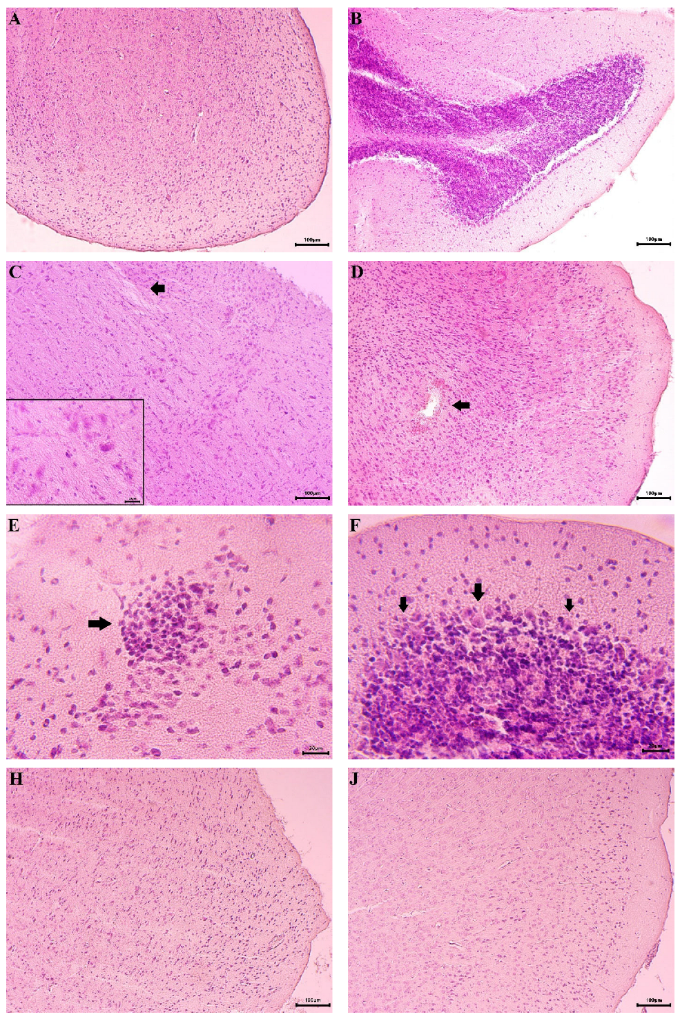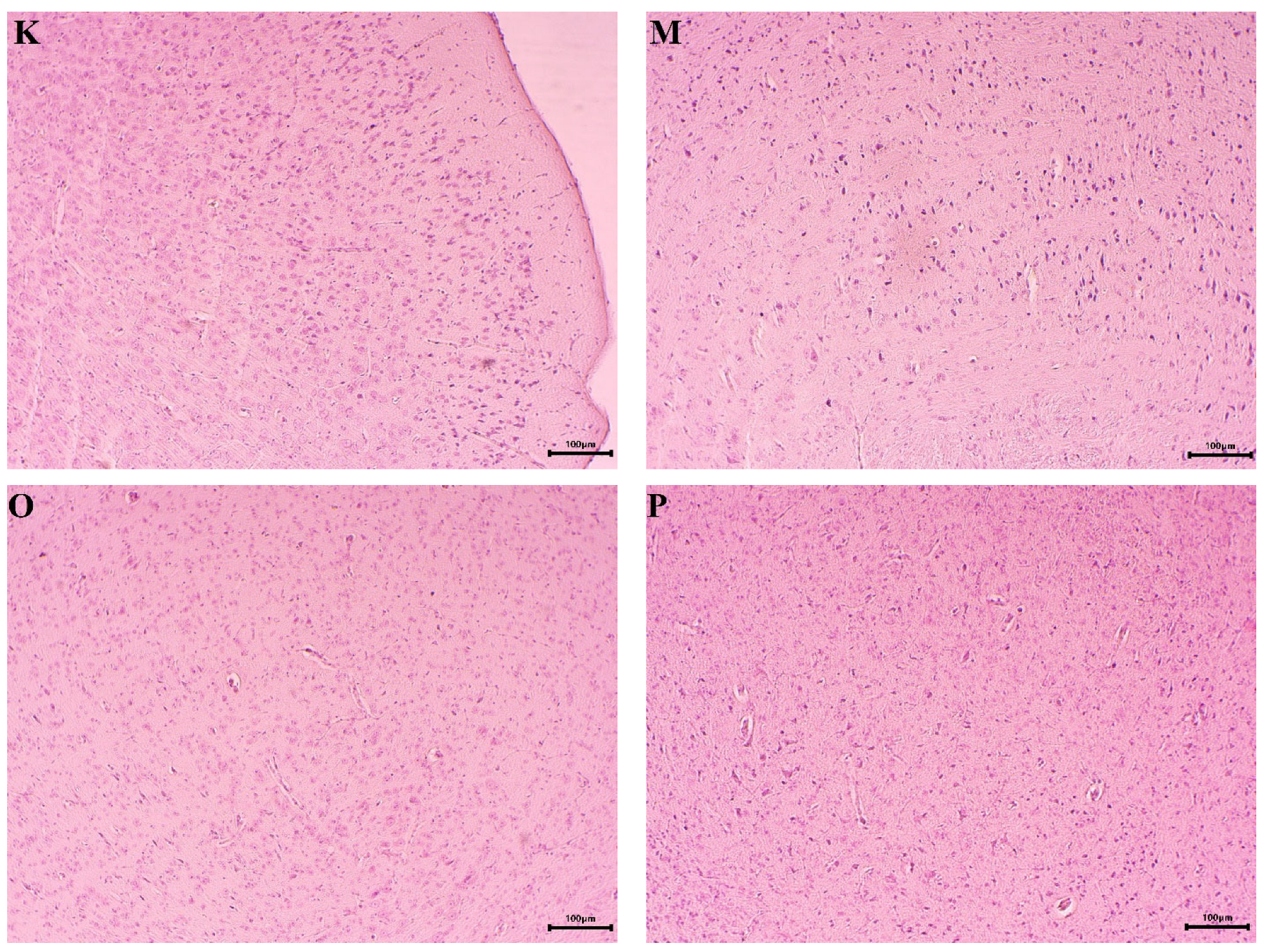 Samples from the mouse brains were fixed in 10% buffered neutral formalin solution. The fixed tissues were dehydrated in ascending grades of alcohol: 50%, 60%, 70%, 80%, 90%, 96%, and absolute alcohol. After dehydration, the samples were cleared in xylene and embedded in paraffin blocks. Sections with a thickness of 5 μm were prepared using a rotary microtome. The sections were attached to slides using histological adhesive and processed with xylene before being rehydrated in a descending alcohol series: absolute alcohol, 96%, 90%, 80%, 70%, 60%, and 50%. Finally, the sections were stained with Hematoxylin-Eosin [