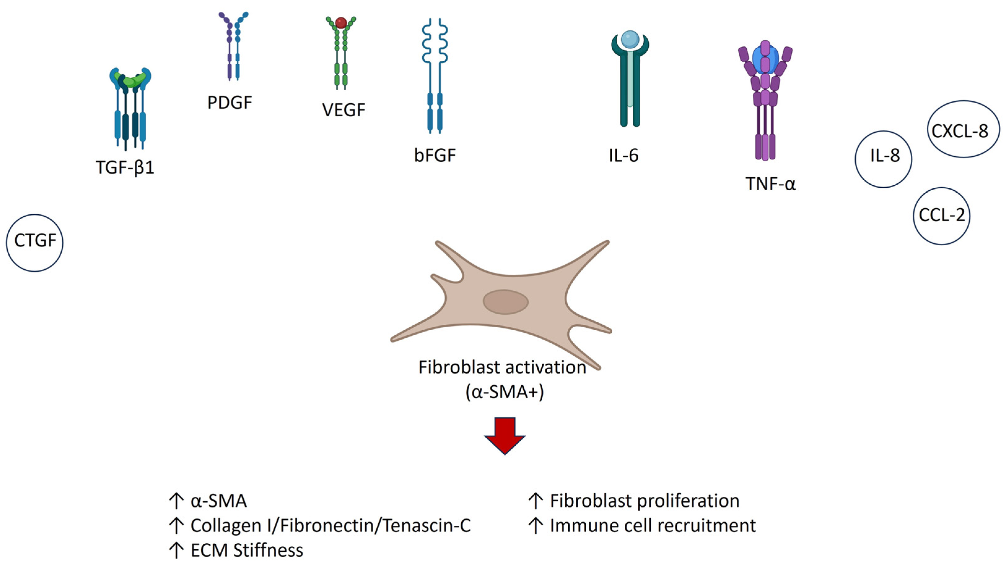 | Redox imbalance and oxidative stress | ↑ Reactive oxygen species (ROS) | ROS activation of MAPK and TGF-β/Smad signaling | Reinforcement of fibroblast activation and collagen deposition | [10,11,42] |