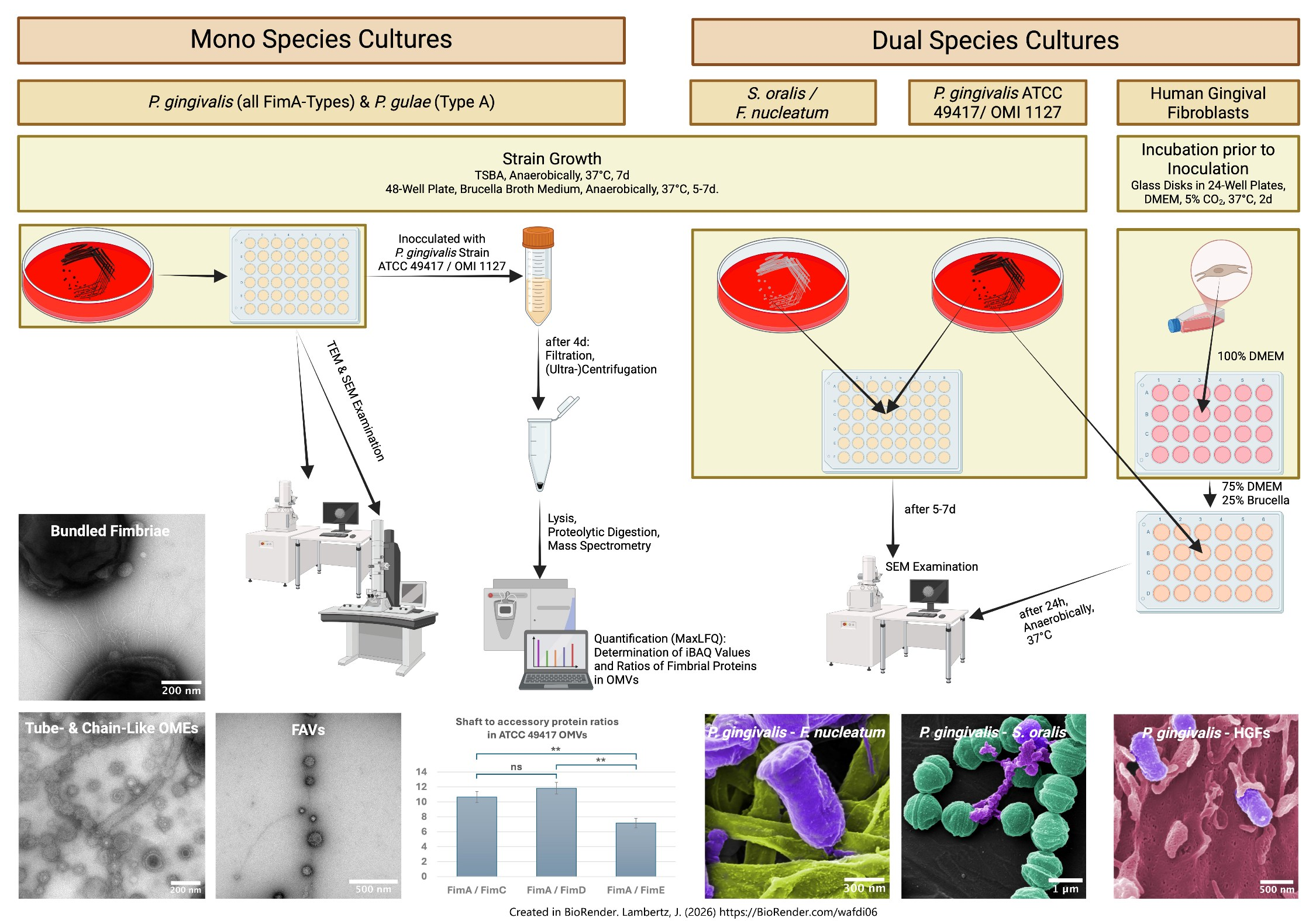 Lambertz, J.; Buhl, E.M.; Apel, C.; Preisinger, C.; Conrads, G. Porphyromonas gingivalis Bundled Fimbriae Interact with Outer Membrane Vesicles, Commensals and Fibroblasts. Int. J. Mol. Sci. 2026, 27, 383. https://doi.org/10.3390/ijms27010383