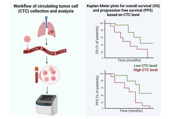 - Tong, B.; Xu, Y.; Zhao, J.; Chen, M.; Xing, J.; Zhong, W.; Wang, M. Prognostic Significance of Circulating Tumor Cells in Non-Small Cell Lung Cancer Patients Undergoing Chemotherapy. Oncotarget 2017, 8, 86615. [Google Scholar] [CrossRef]