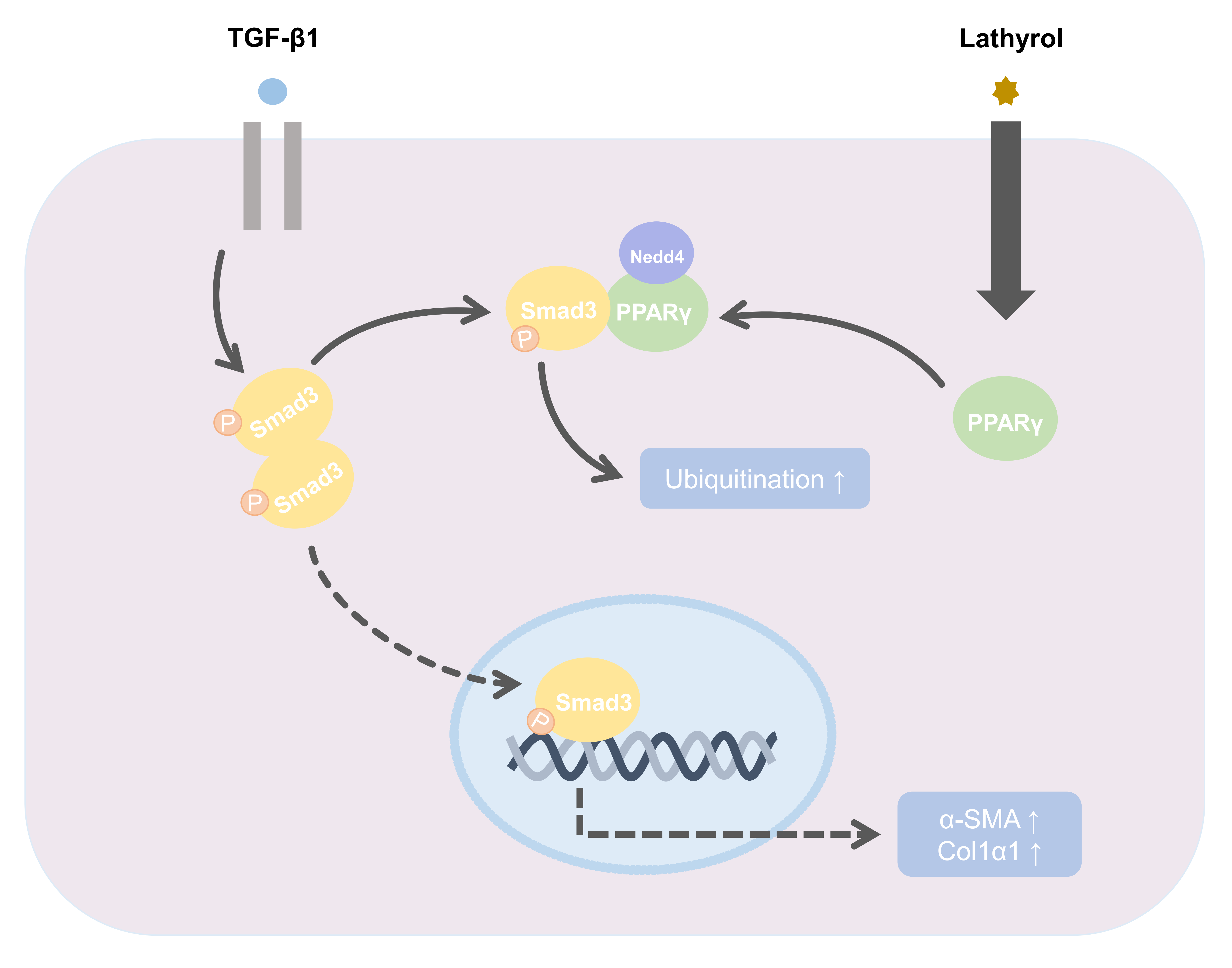 Chicago/Turabian StyleZeng, Qian, Min-Lin Liao, Yu-Yang Luo, Shuang Li, Gao You, Chong-Mei Huang, Min-Hui Liu, Wei Liu, and Si-Yuan Tang. 2026. "Lathyrol Exerts Anti-Pulmonary Fibrosis Effects by Activating PPARγ to Inhibit the TGF-β/Smad Pathway" International Journal of Molecular Sciences 27, no. 1: 387. https://doi.org/10.3390/ijms27010387