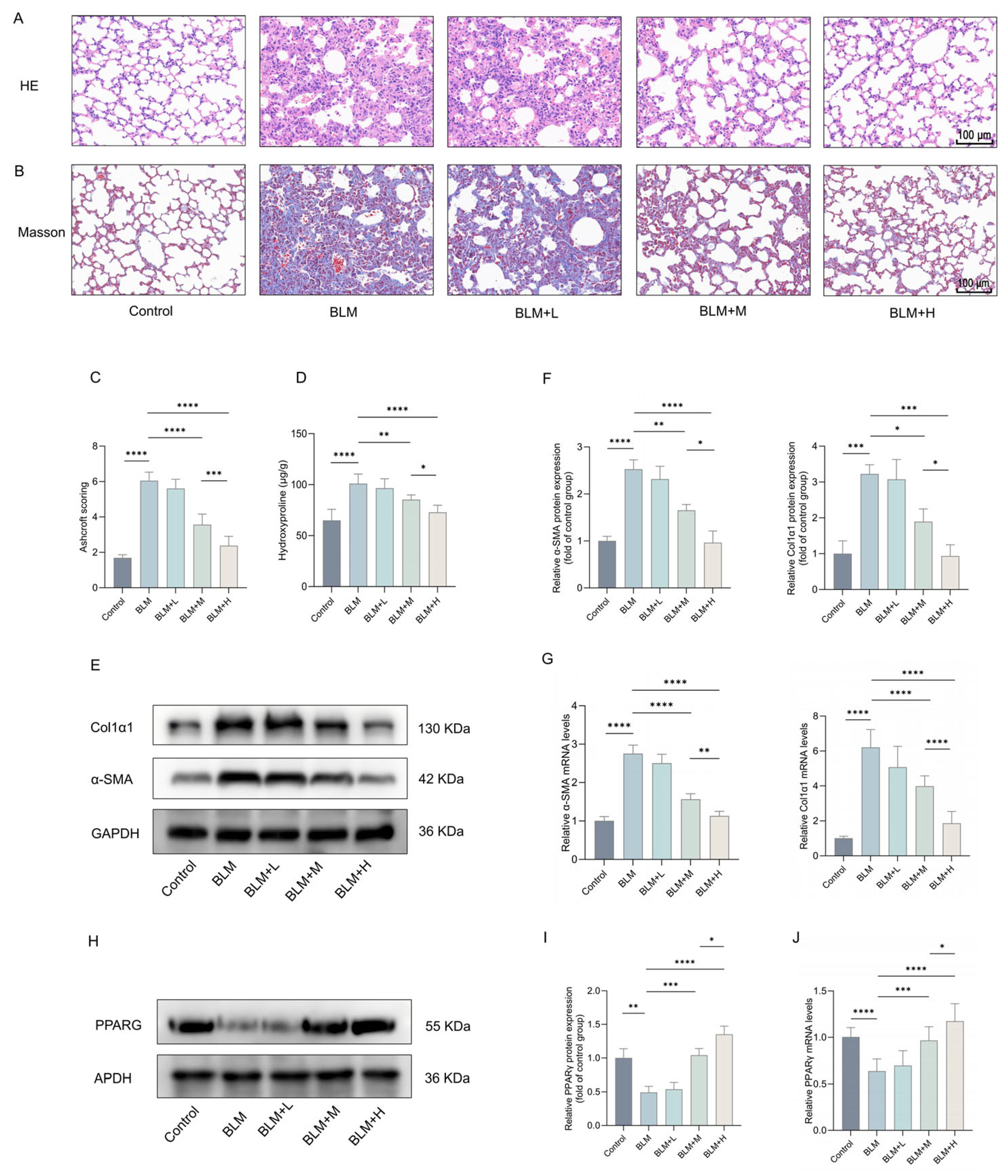 2.6. PPARγ Mediated the Anti-Pulmonary Fibrosis Effects of Lathyrol In Vivo