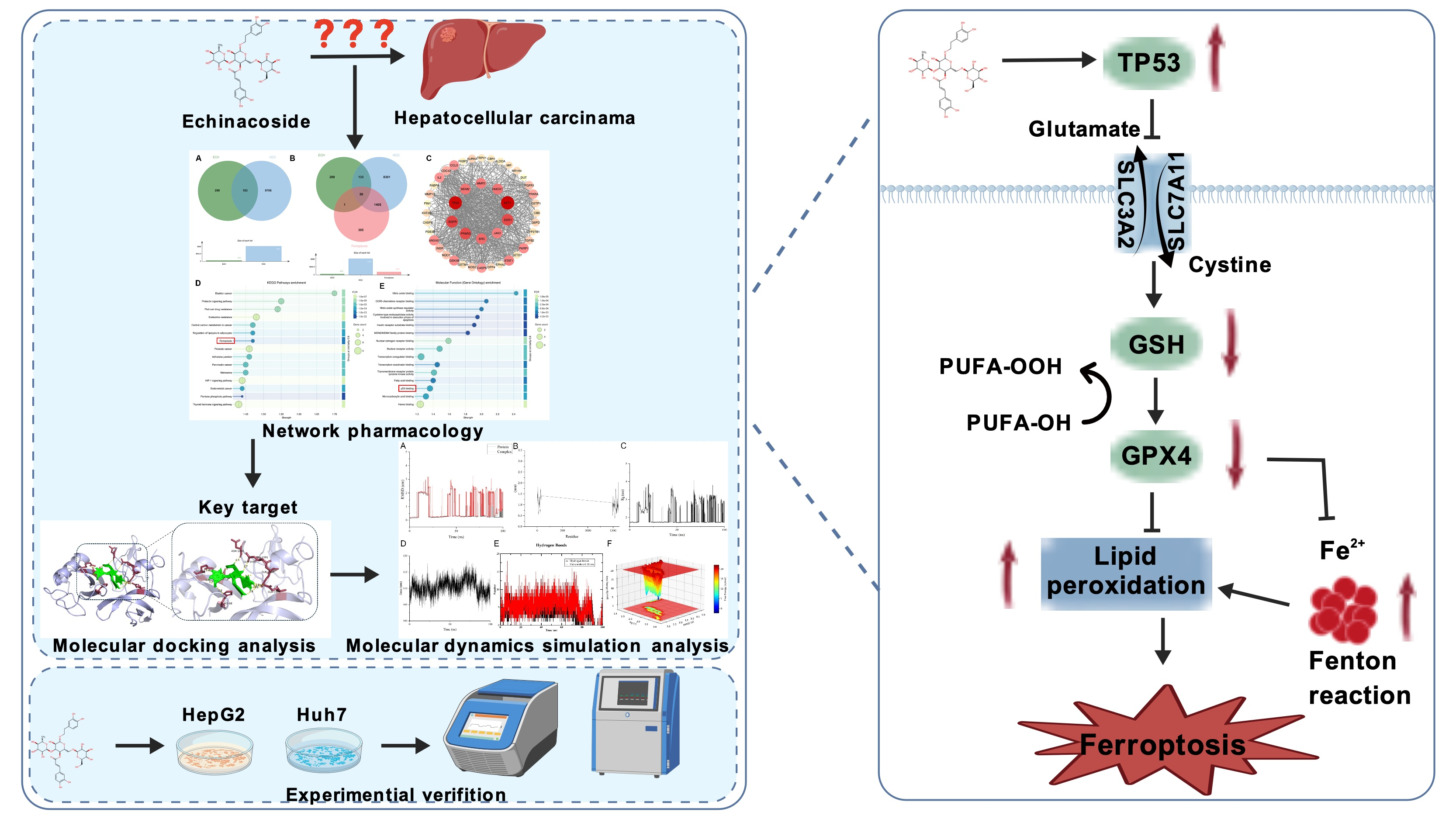 Chicago/Turabian StyleWang, Pei, Jianhao Lin, and Deqi Su. 2026. "Echinacoside as a Novel Ferroptosis Inducer in Hepatocellular Carcinoma: Mechanistic Insights from TP53/SLC7A11/GPX4 Pathway Modulation" International Journal of Molecular Sciences 27, no. 1: 411. https://doi.org/10.3390/ijms27010411