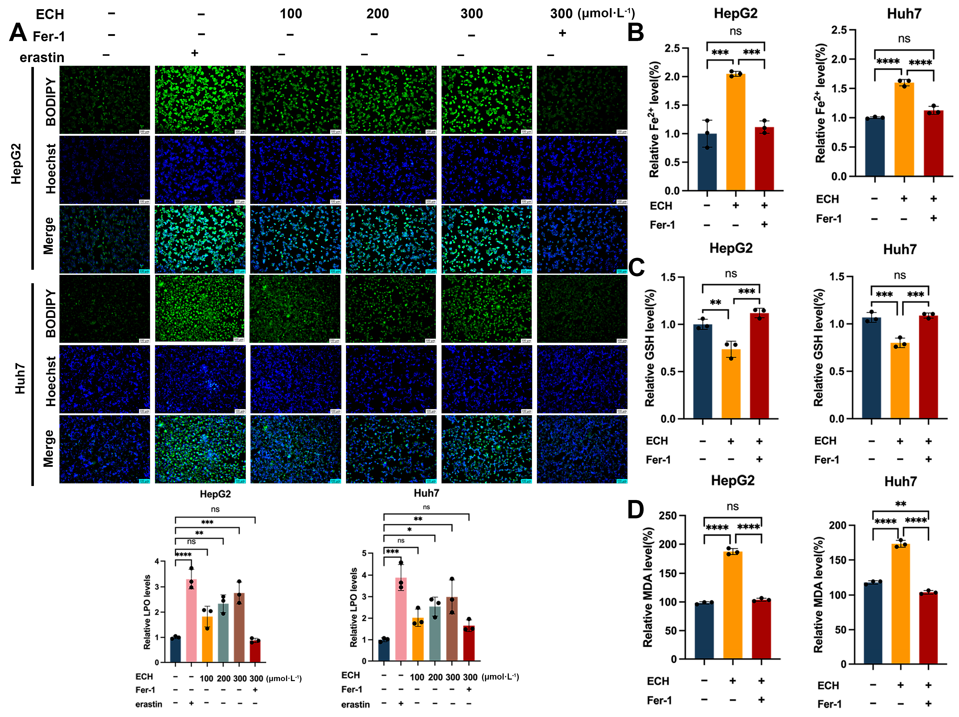 2.6. ECH Induces Ferroptosis in HCC Cells