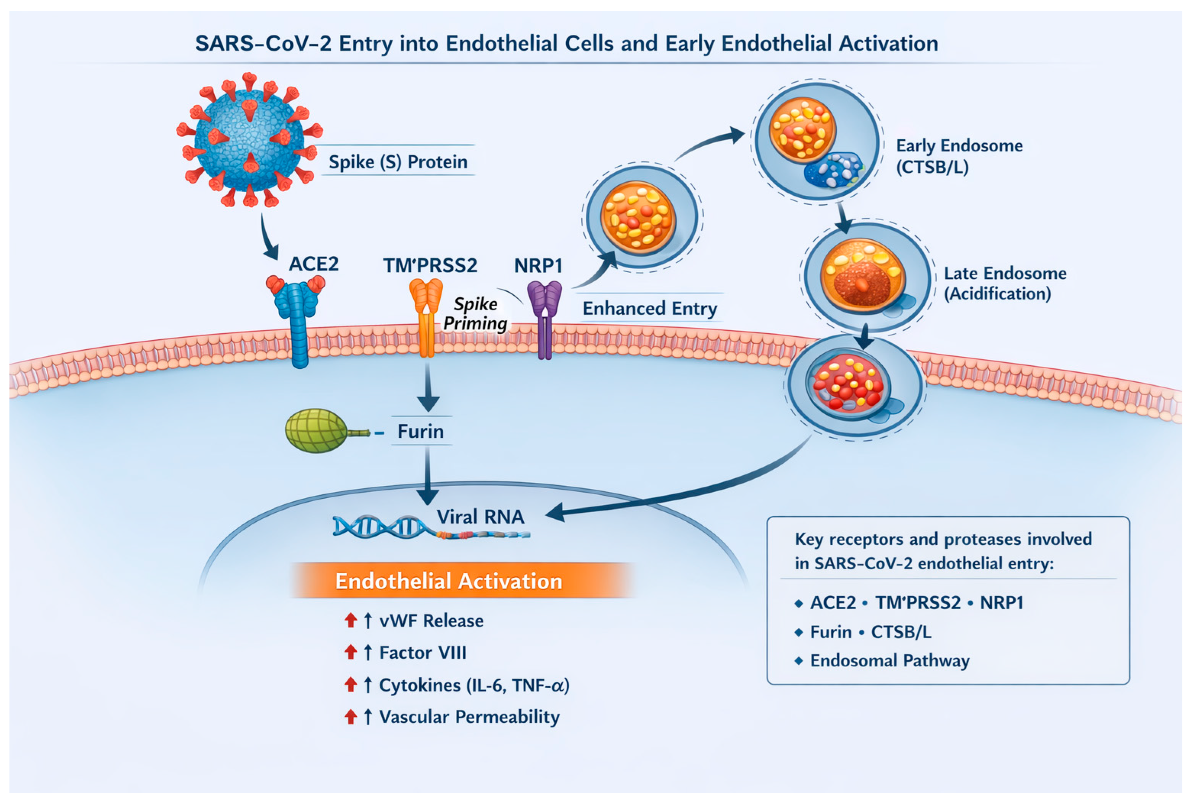 - Valencia, I.; Lumpuy-Castillo, J.; Magalhaes, G.; Sánchez-Ferrer, C.F.; Lorenzo, Ó.; Peiró, C. Mechanisms of Endothelial Activation, Hypercoagulation and Thrombosis in COVID-19: A Link with Diabetes Mellitus. Cardiovasc. Diabetol. 2024, 23, 75. [Google Scholar] [CrossRef]