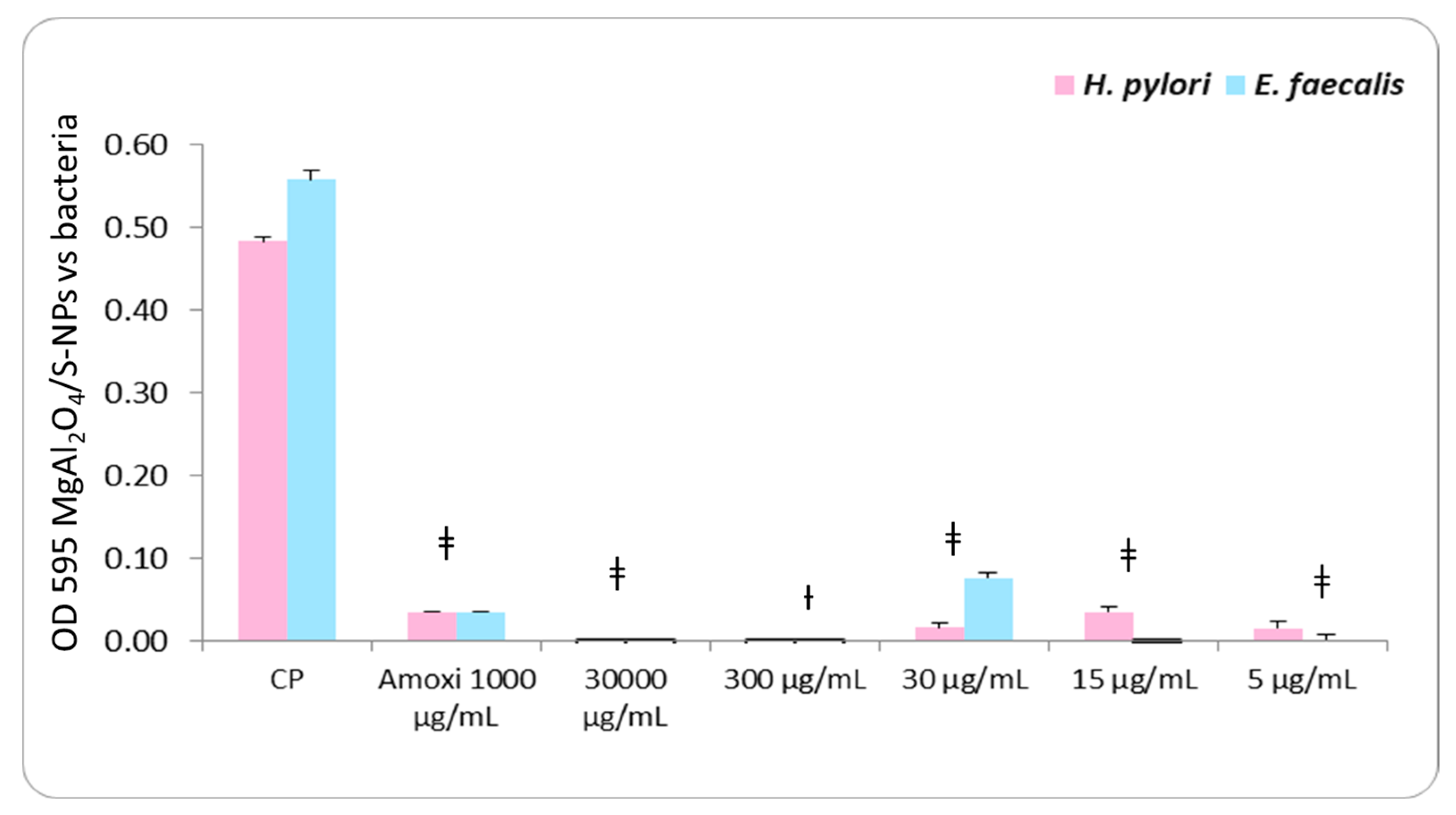 | MgAl2O4/S-NPs 5 µg/mL | 0.015 | 0.008 | 0.0005 | (+) |