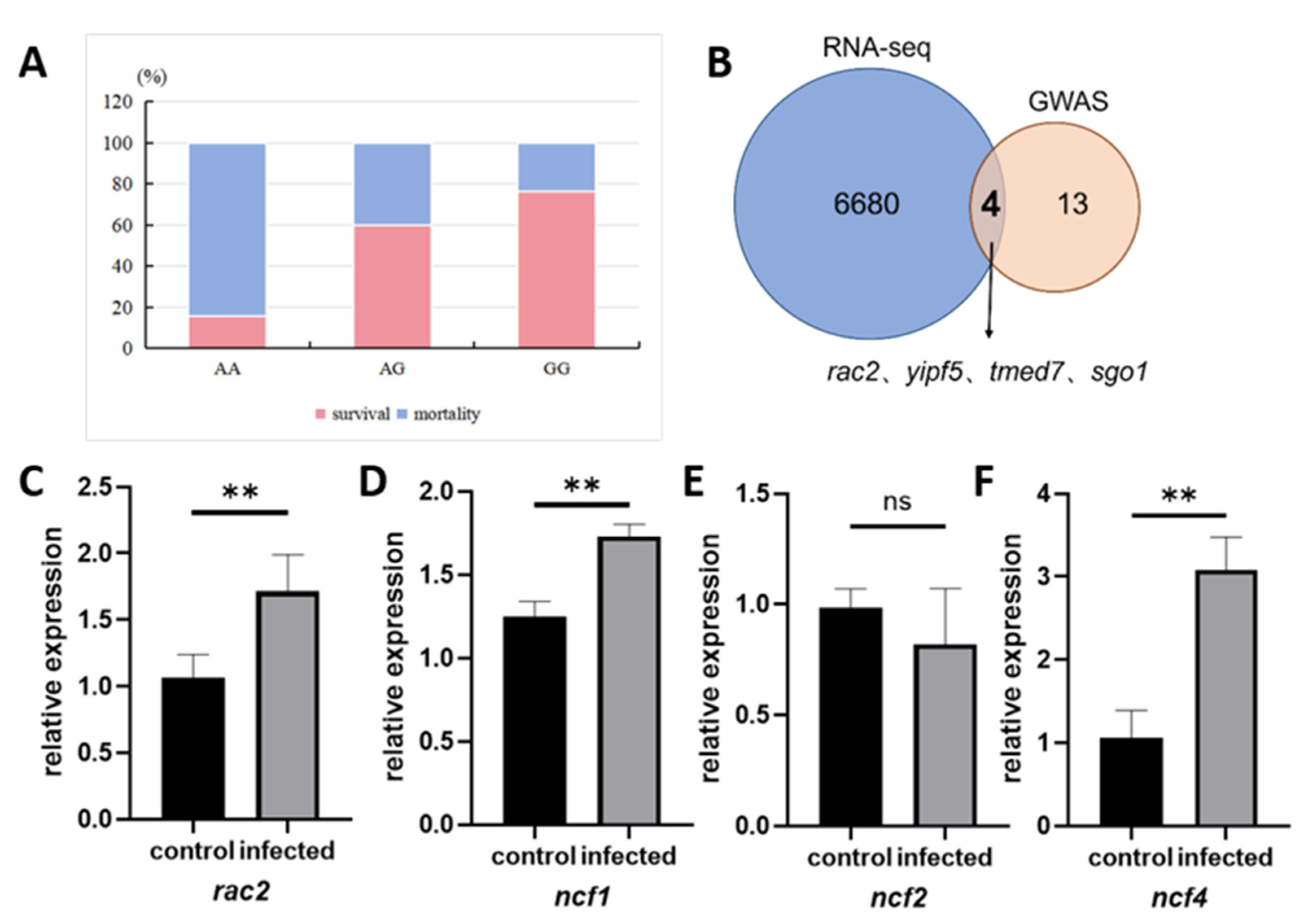 2.5. Population Validation of SNP Loci and Verification of Resistance Genes and SNPs Associated with V. mimicus Infection in Yellow Catfish