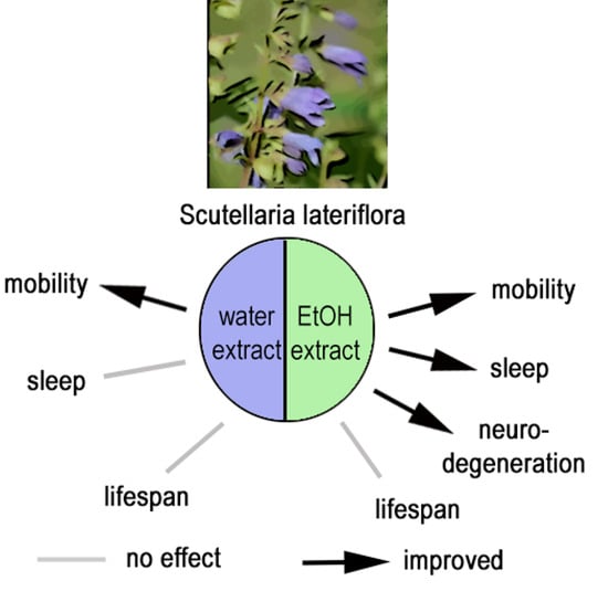 Long, D.M.; Martinez, J.; Soumyanath, A.; Kretzschmar, D. Scutellaria lateriflora Extract Supplementation Provides Resilience to Age-Related Phenotypes in Drosophila melanogaster. Int. J. Mol. Sci. 2026, 27, 461. https://doi.org/10.3390/ijms27010461