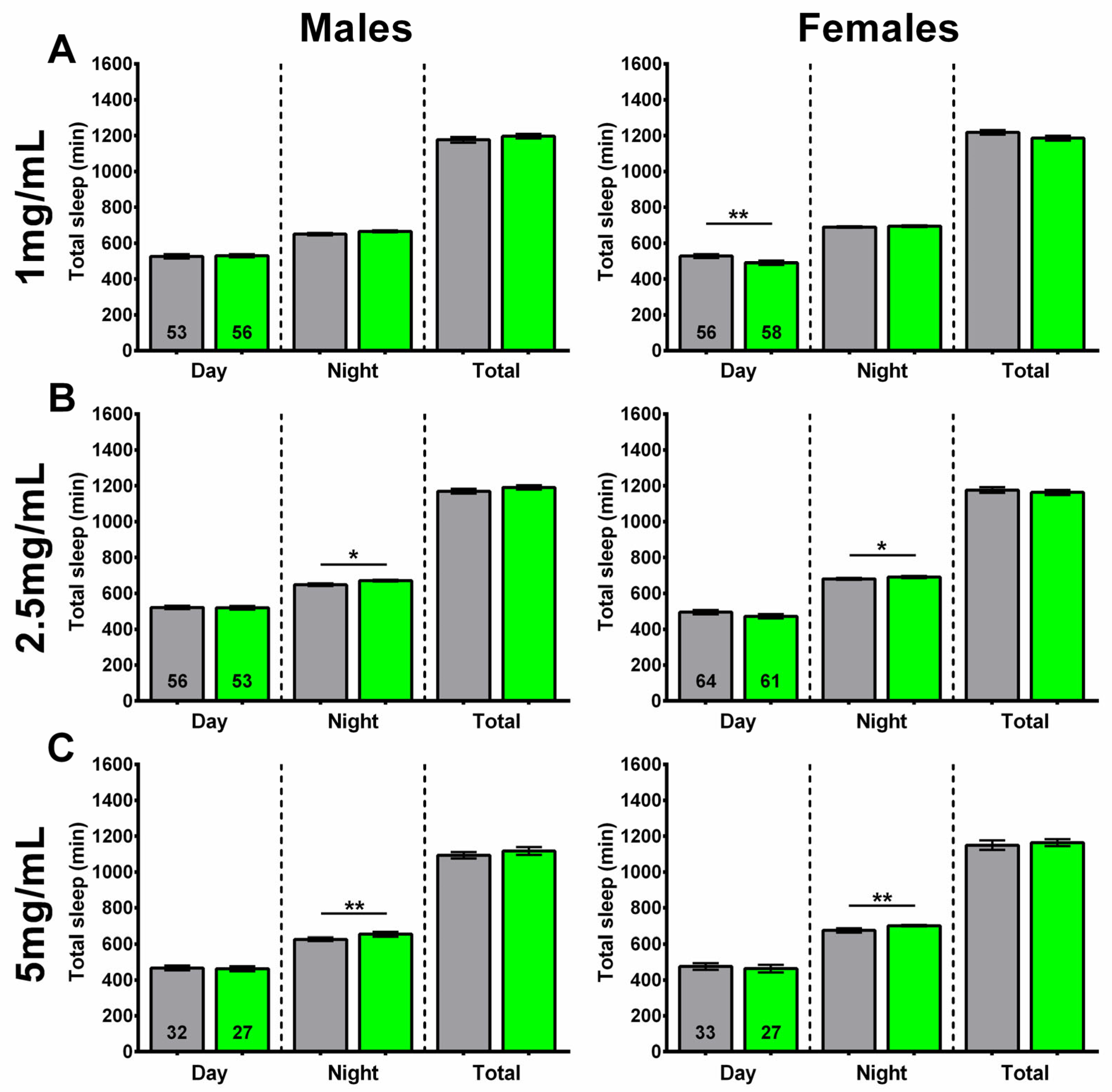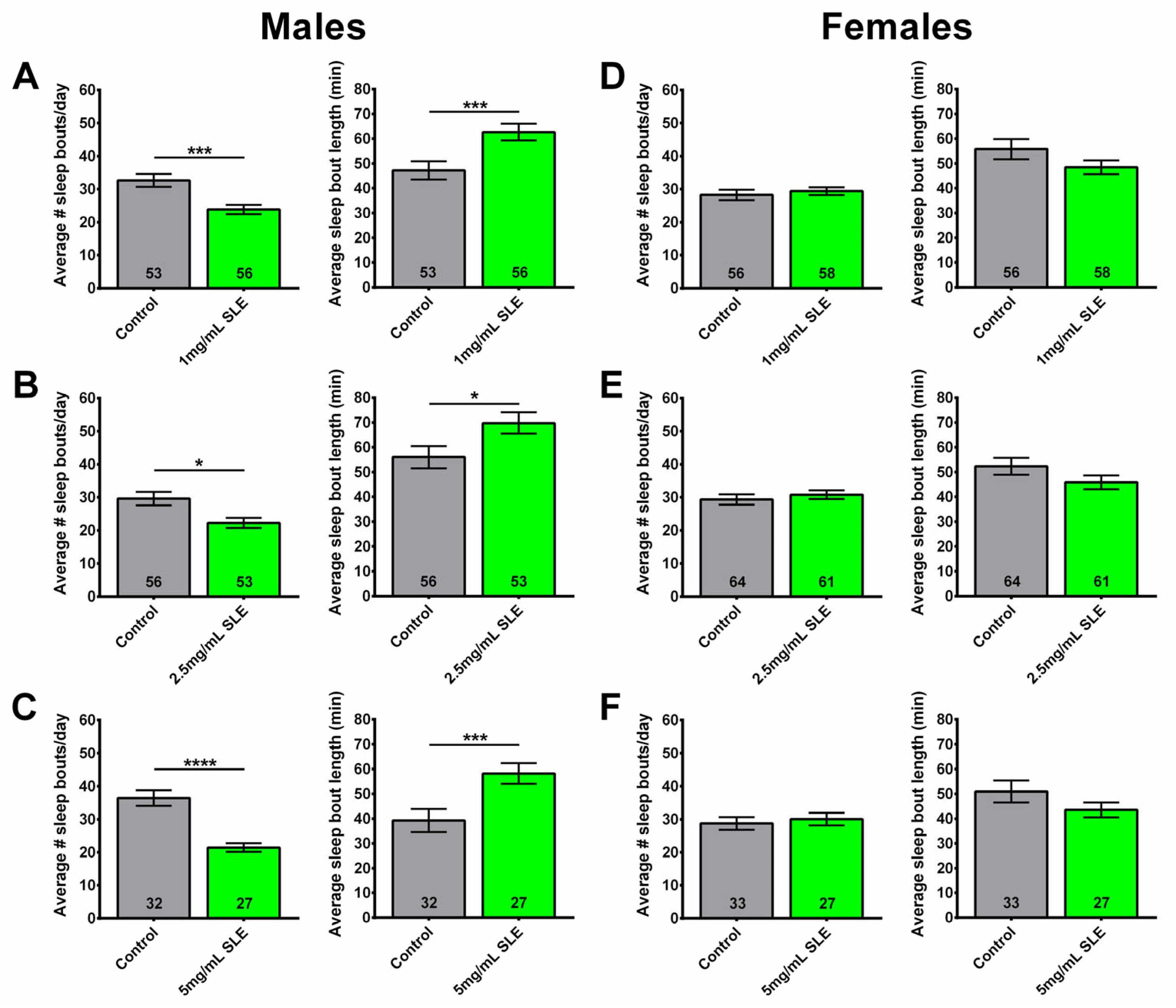 2.2. Sleep Fragmentation Is Reduced in Males Given the Ethanol Extract of SL