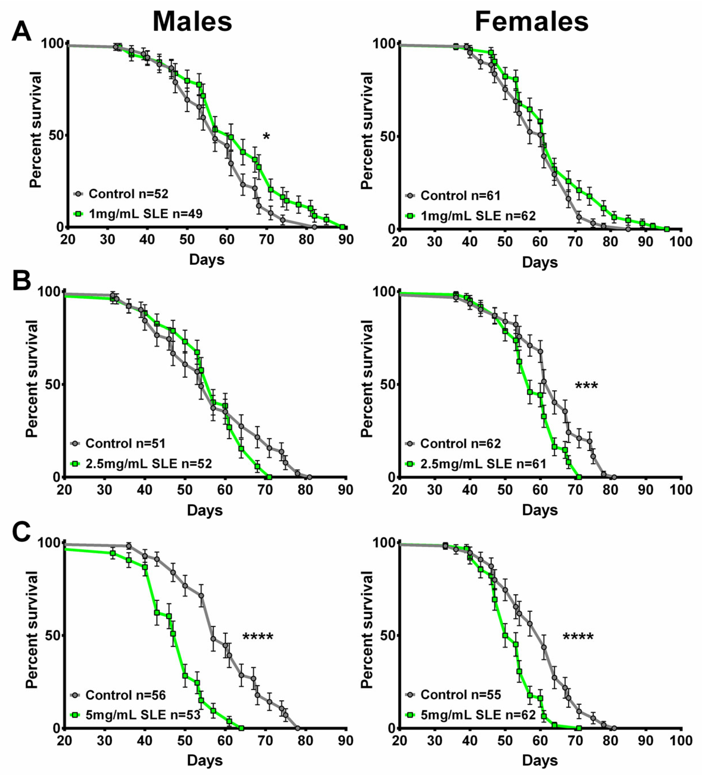 2.4. SL Supplementation Did Not Extend Longevity