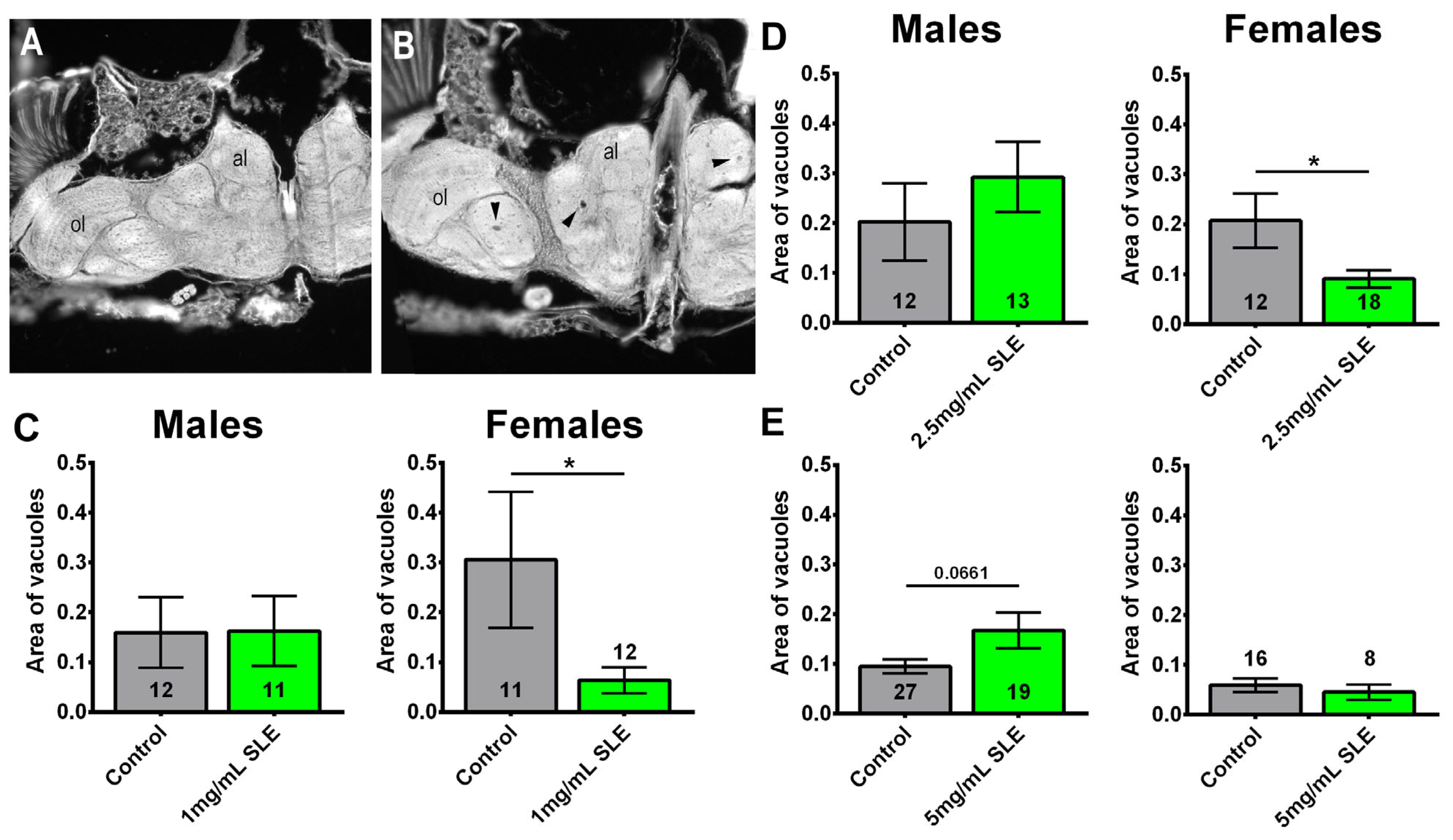 2.5. SLE Reduces Neurodegeneration