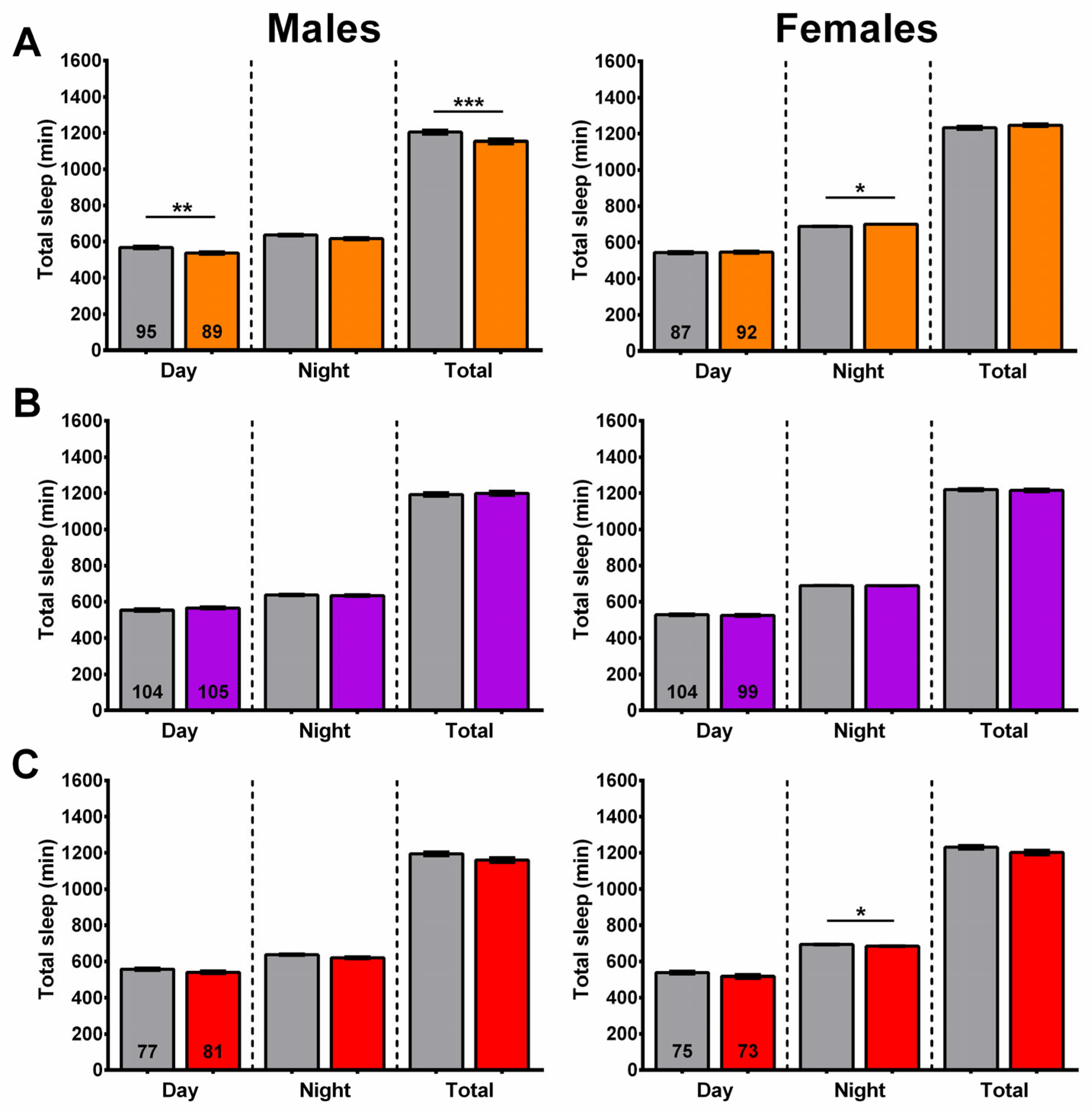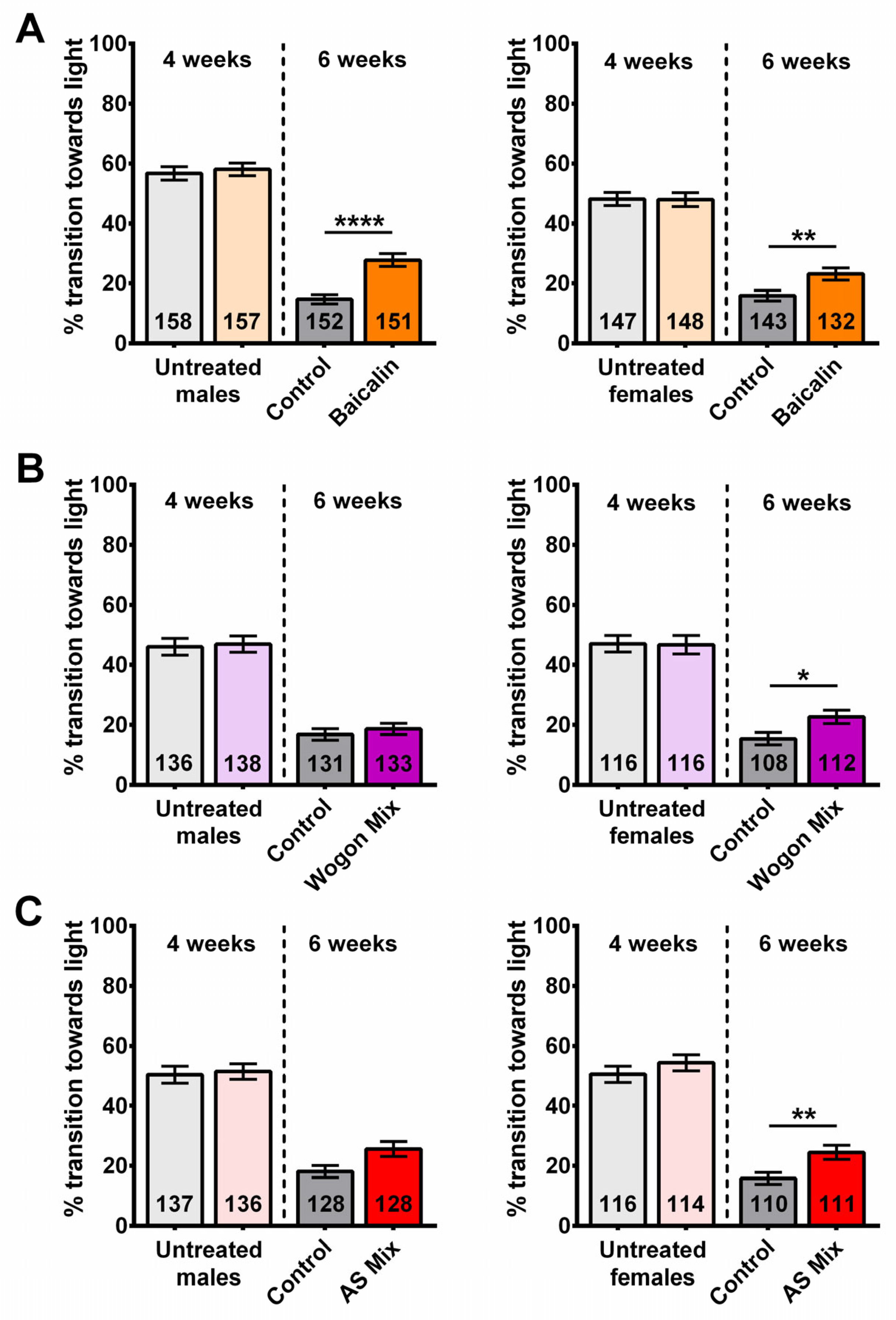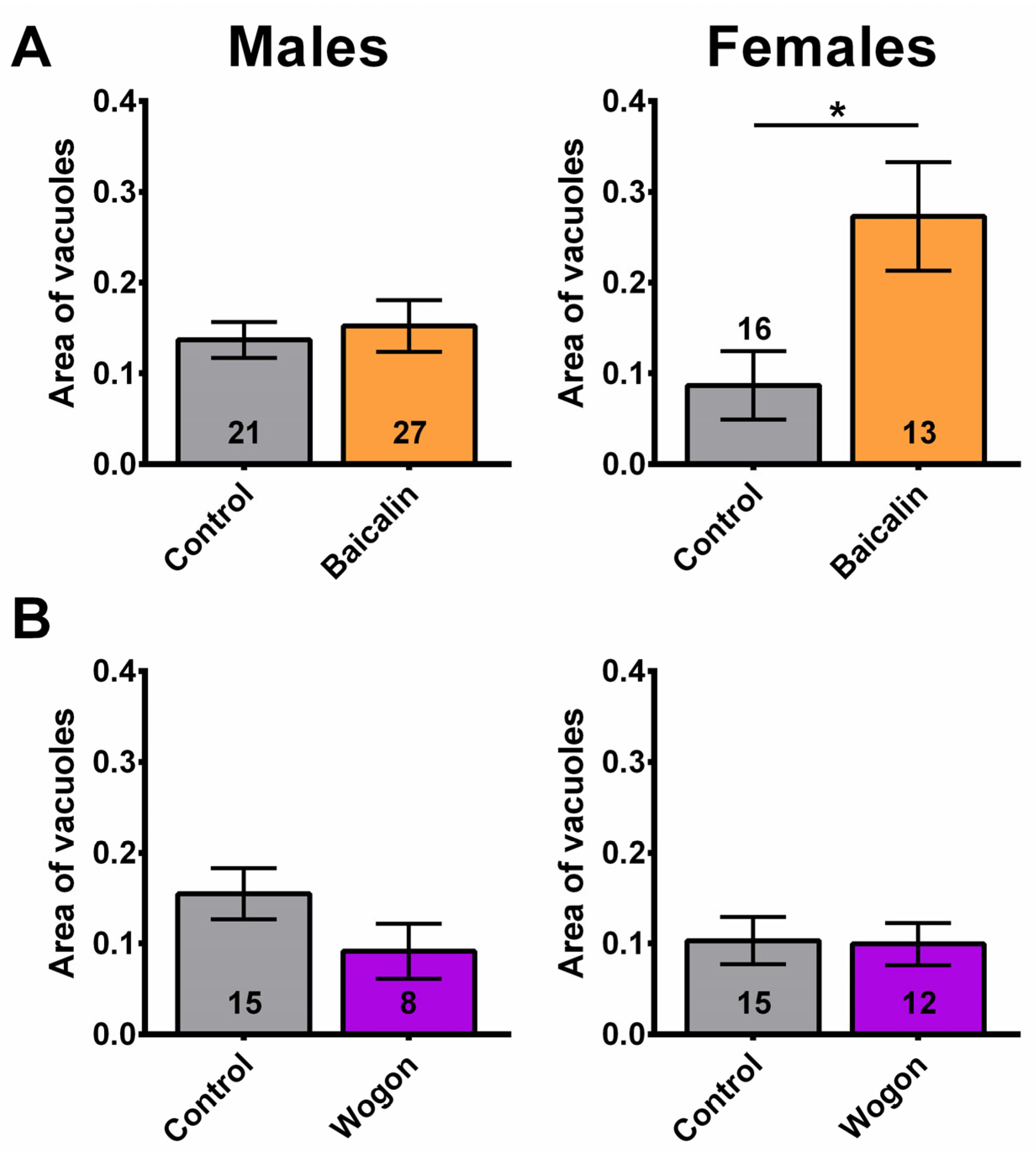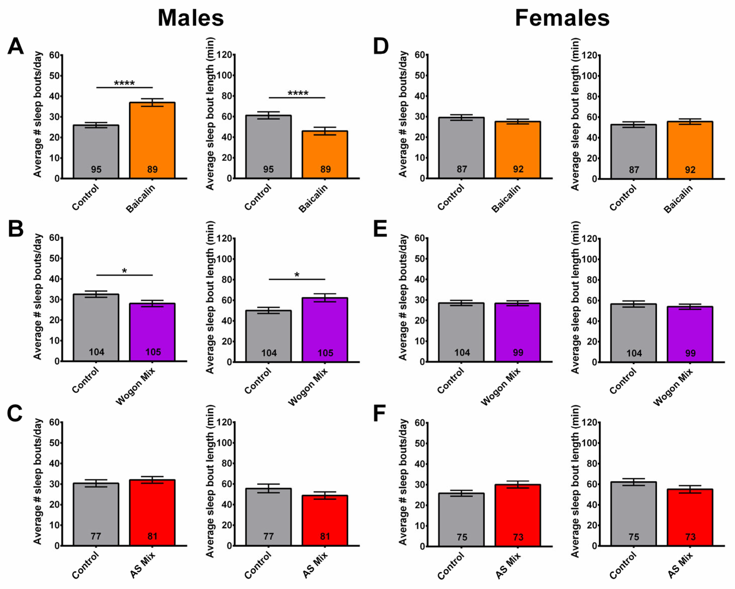 2.8. Wogon Mix Treatment Reduced Sleep Fragmentation in Males