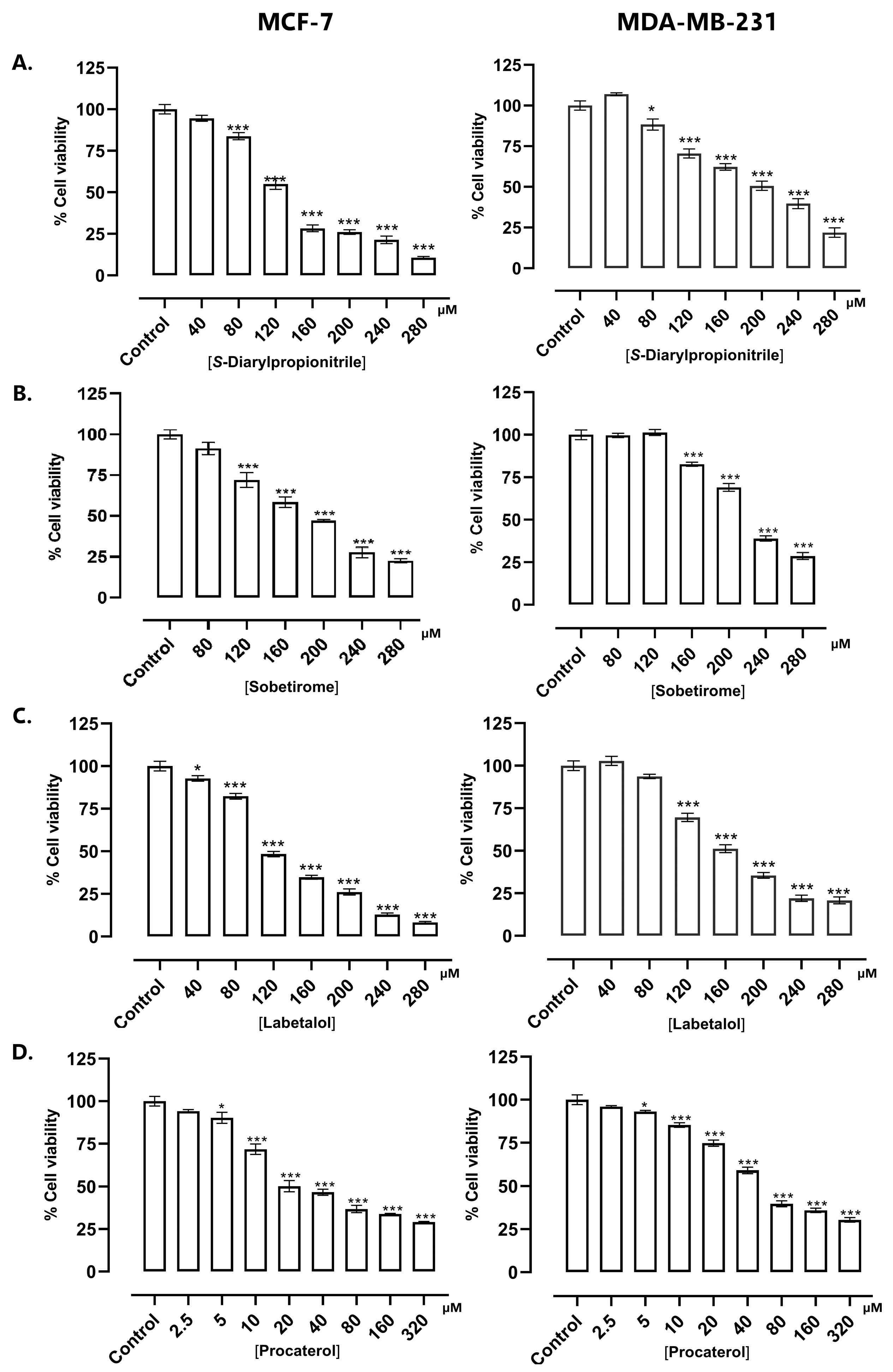 2.5. Antiproliferative Activity Assays on BC Cell Lines