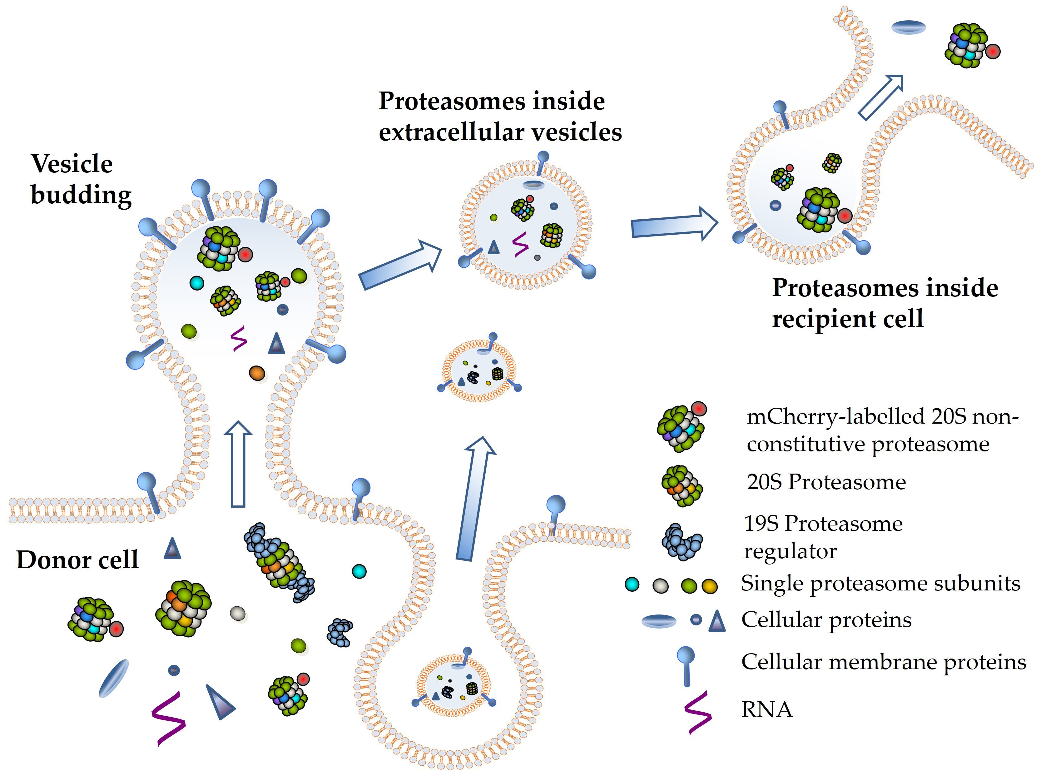 Transmission of Non-Constitutive Proteasomes Between Cells via Extracellular Vesicles