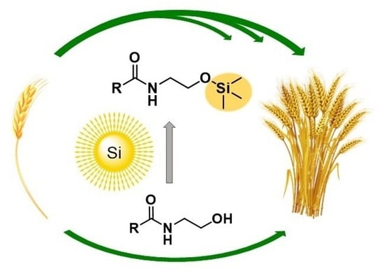 - Orzoł, A.; Cruzado-Tafur, E.; Gołebiowski, A.; Rogowska, A.; Pomastowski, P.; Górecki, R.J.; Buszewski, B.; Szultka-Mły’nska, M.; Głowacka, K. Comprehensive Study of Si-Based Compounds in Selected Plants (Pisums ativum L., Medicago sativa L., Triticum aestivum L.). Molecules 2023, 28, 4311. [Google Scholar] [CrossRef]