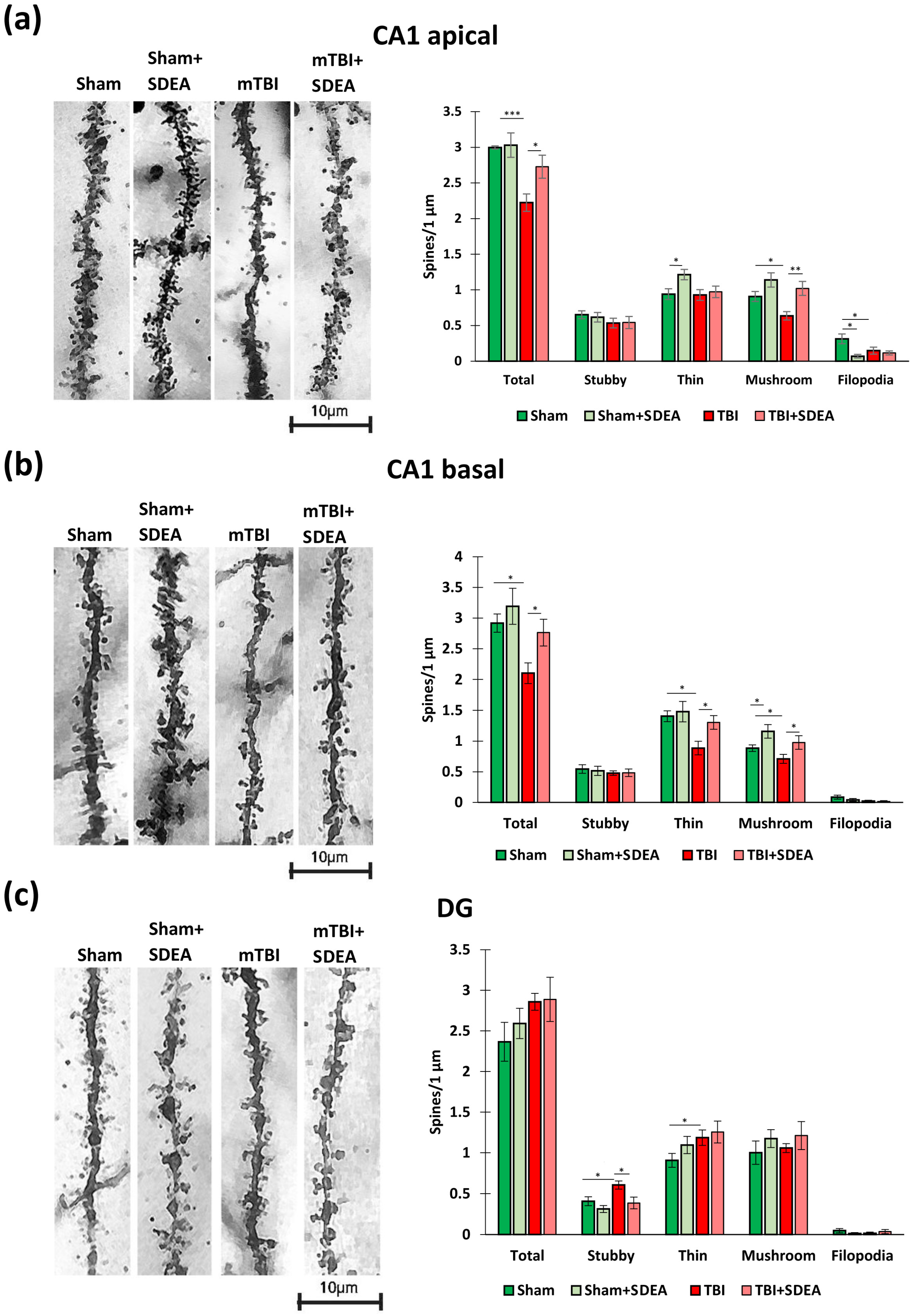 2.4. Spine Remodeling After mTBI and SDEA Treatment