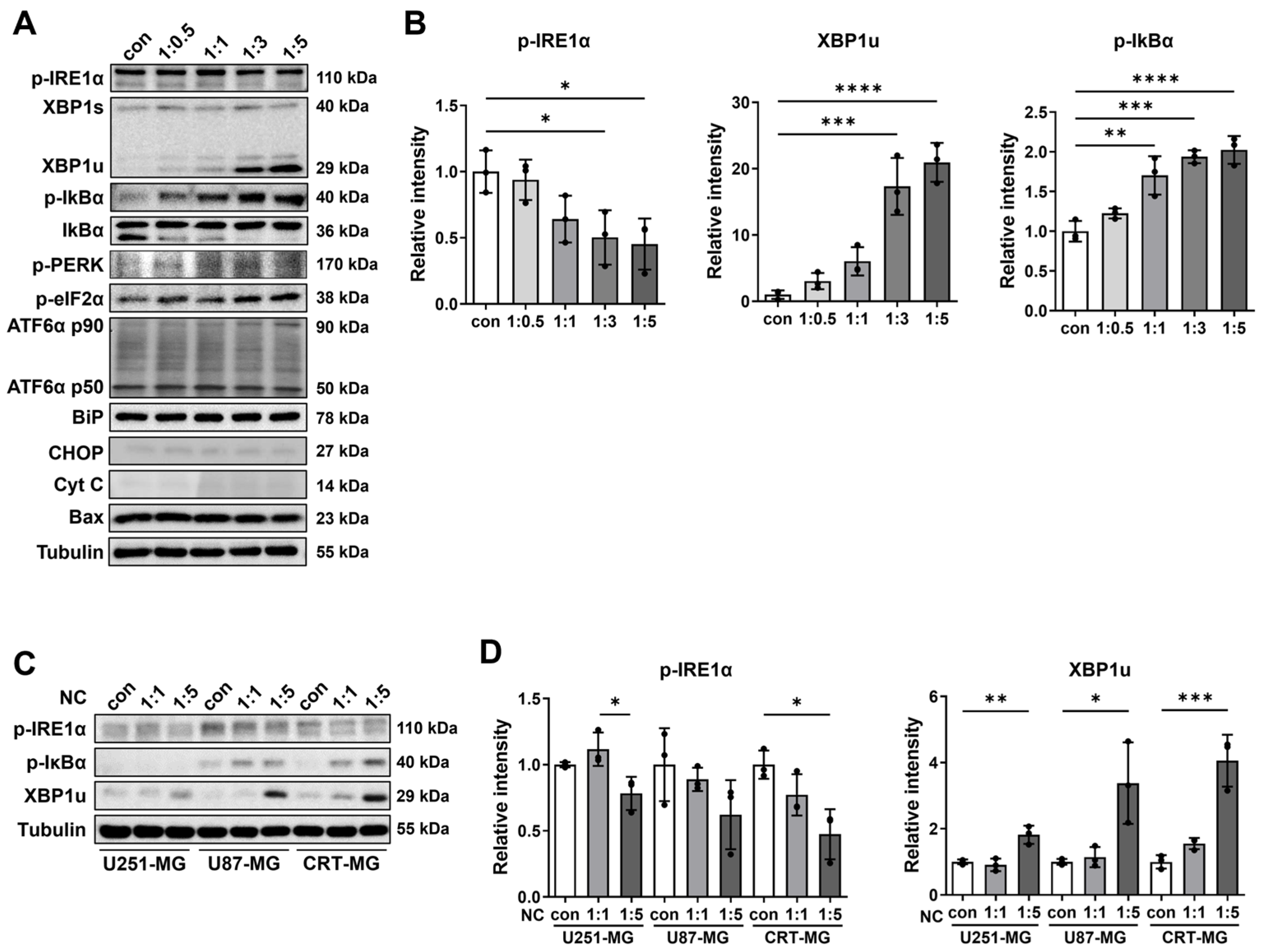 2.1. The Effect of Necrotic Cells on ER Stress and NF-κB Pathways in Glioblastoma Cells