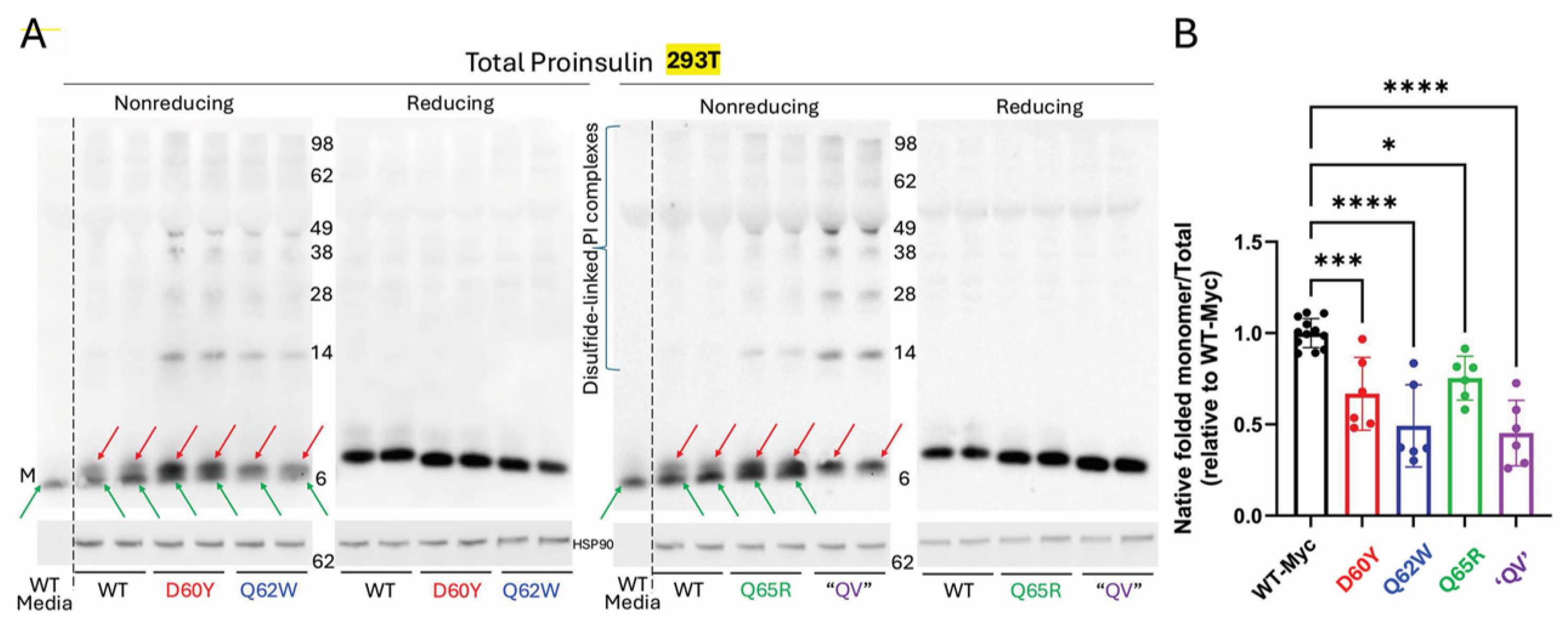 2.1. The Folding of Proinsulin Exhibits Sequence-Specific Sensitivity to Changes in C-Peptide Structure, Which Controls the Efficiency of Proinsulin Anterograde Trafficking