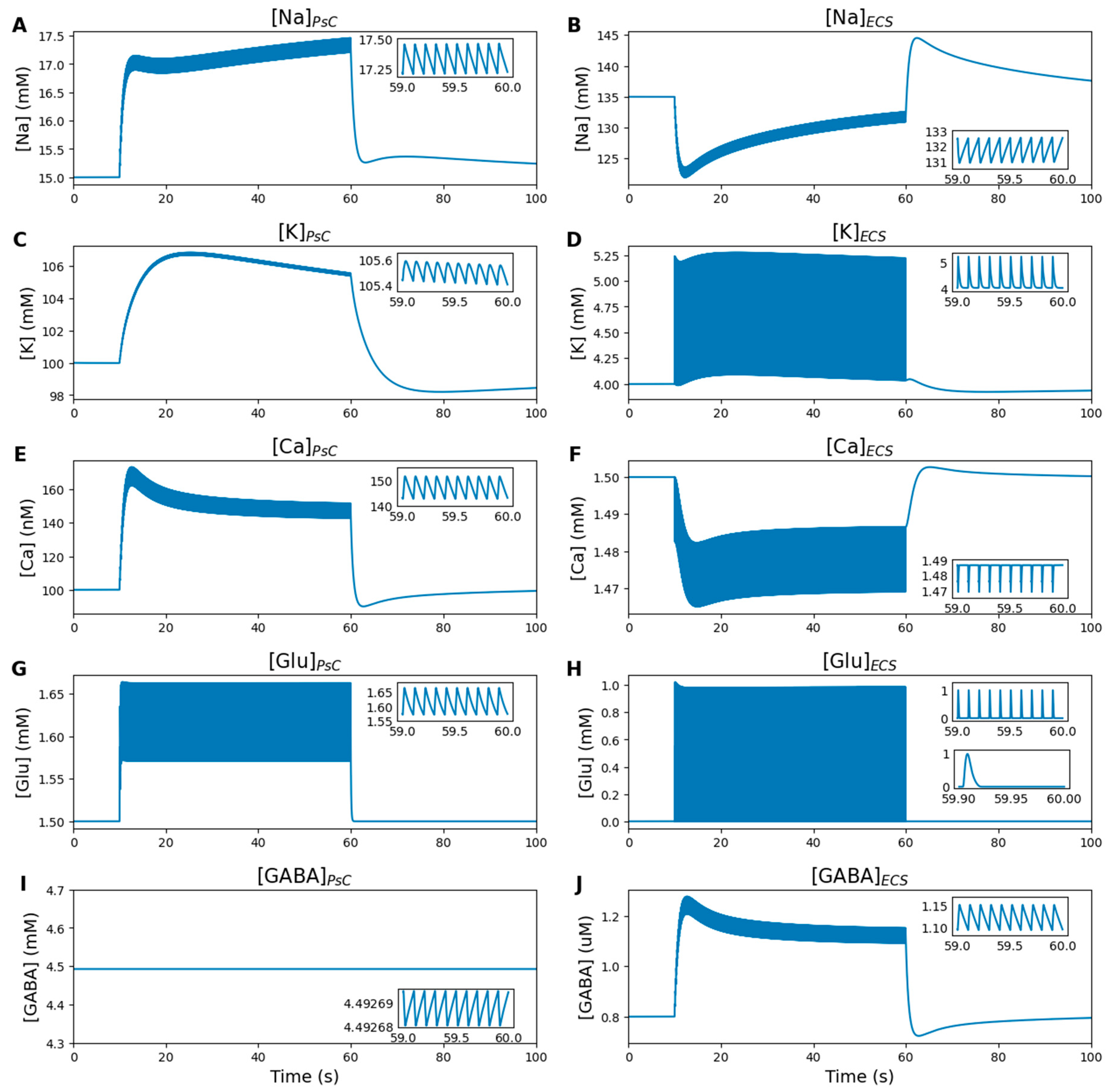 2.5.4. Ion and Neurotransmitter Concentrations