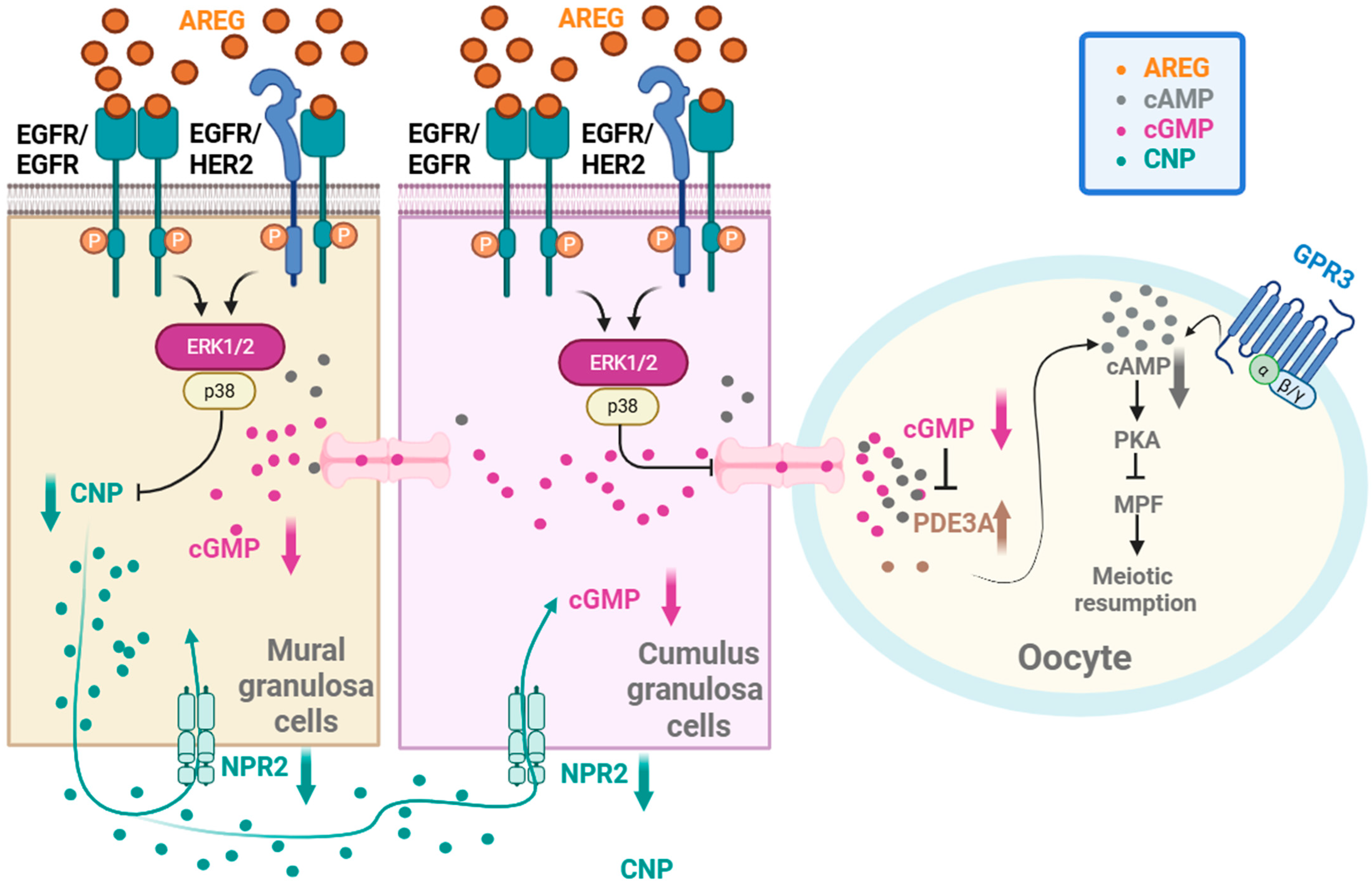 - Fang, L.; Sun, Y.P.; Cheng, J.C. The role of amphiregulin in ovarian function and disease. Cell. Mol. Life Sci. 2023, 80, 60. [Google Scholar] [CrossRef]