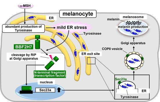 APA StylePhan, G. H., Fujise, K., Imaizumi, K., & Saito, A. (2026). Vesicular Transport Mediated by Endoplasmic Reticulum Stress Sensor BBF2H7 Orchestrates Melanin Production During Melanogenesis. International Journal of Molecular Sciences, 27(1), 501. https://doi.org/10.3390/ijms27010501