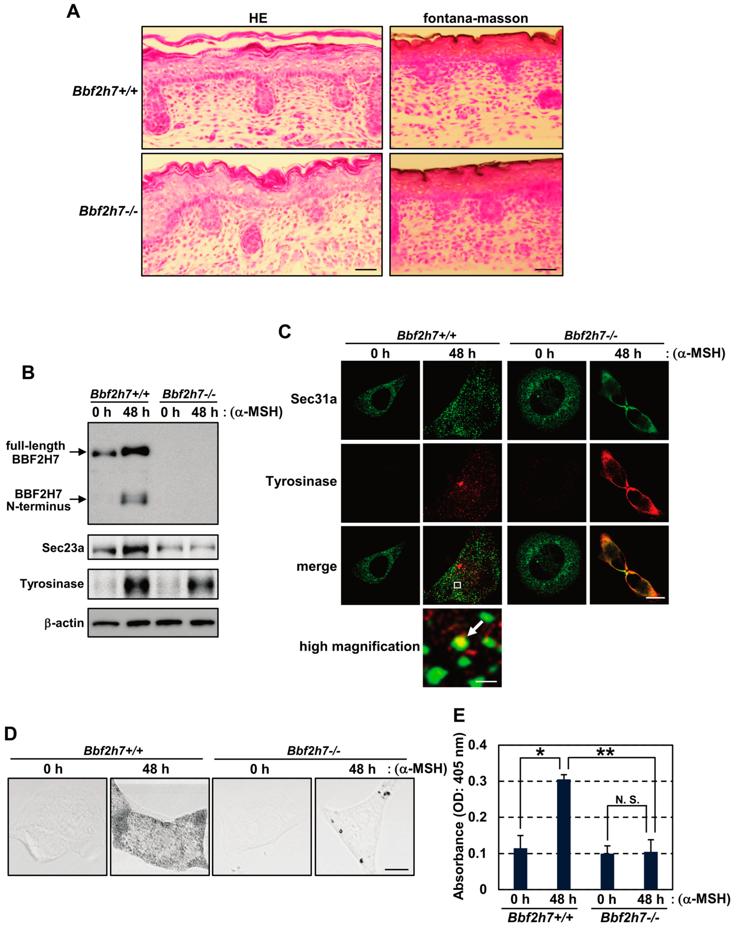 2.2. Activation of BBF2H7 Is Necessary for Vesicular Transport of Tyrosinase