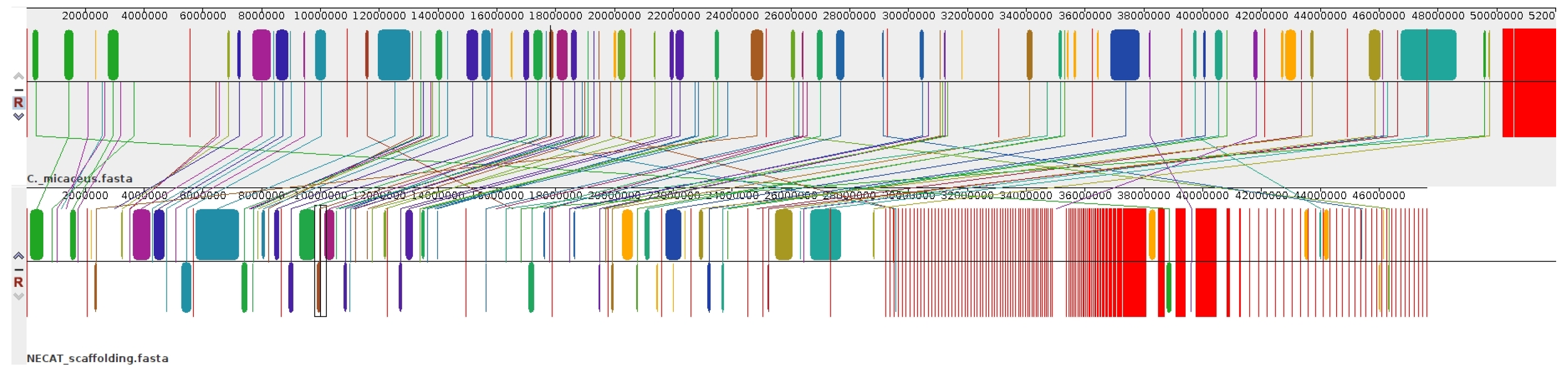 2.4. Iterative Scaffolding Using the NECAT Assembly as a Reference