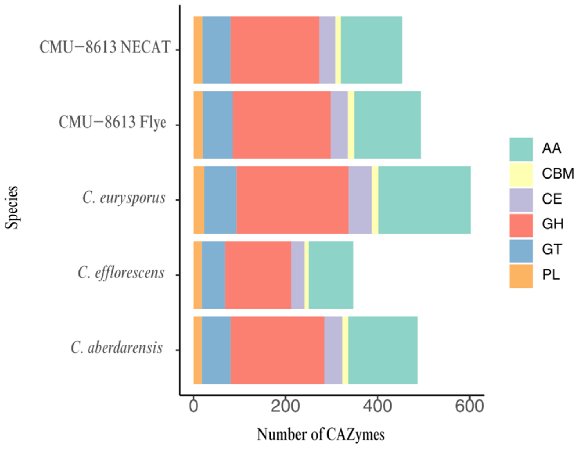 - Ribeiro-Tomé, L.M.; Quintanilha-Peixoto, G.; Costa-Rezende, D.H.; Salvador-Montoya, C.A.; Cardoso, D.; Araújo, D.S.; Góes-Neto, A. Comparative genomics and stable isotope analysis reveal the saprotrophic-pathogenic lifestyle of a neotropical fungus. mBio 2024, 15, e01423-24. [Google Scholar] [CrossRef]