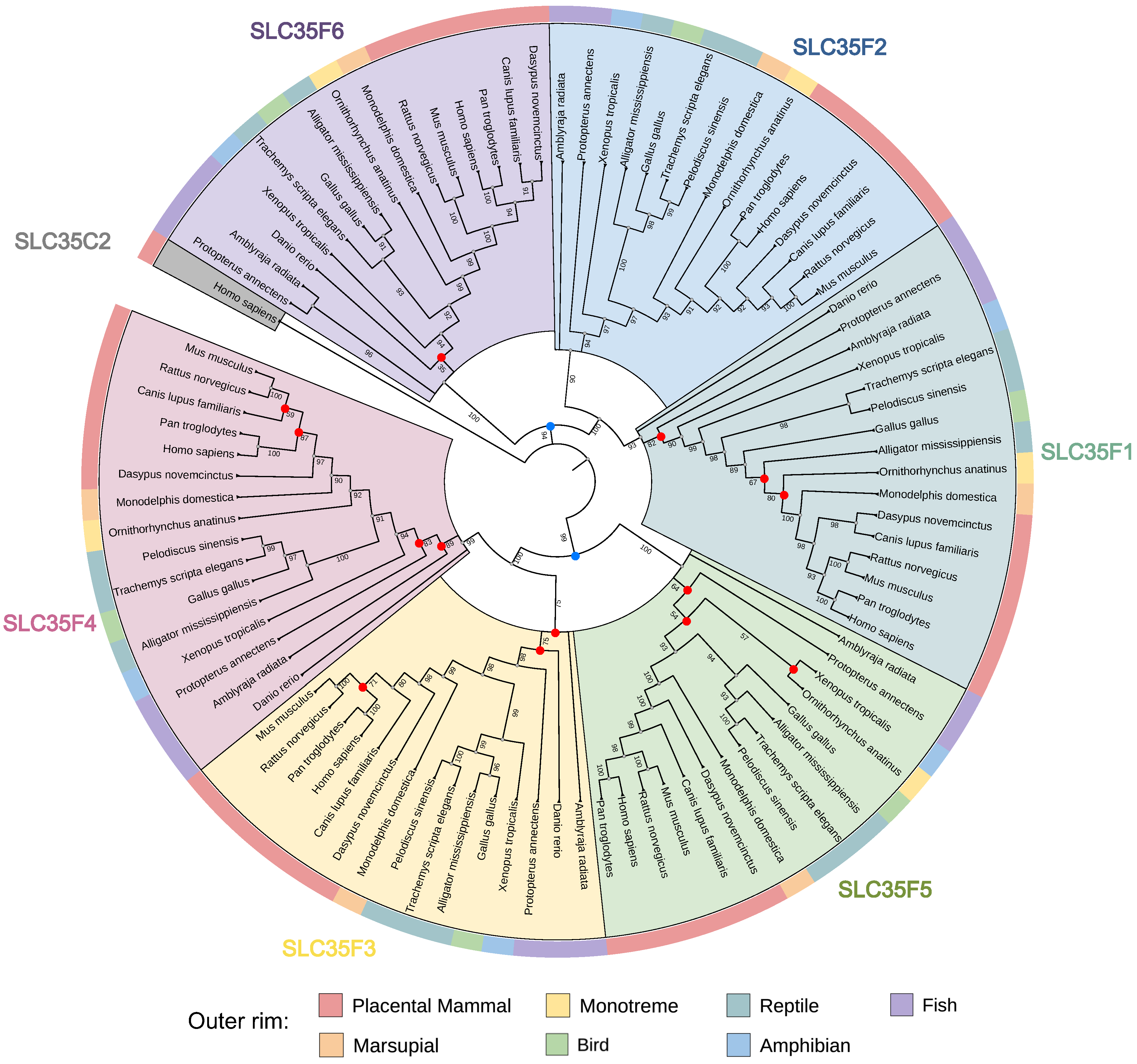 4.3. Phylogenetic Analysis of the SLC35F Subfamily